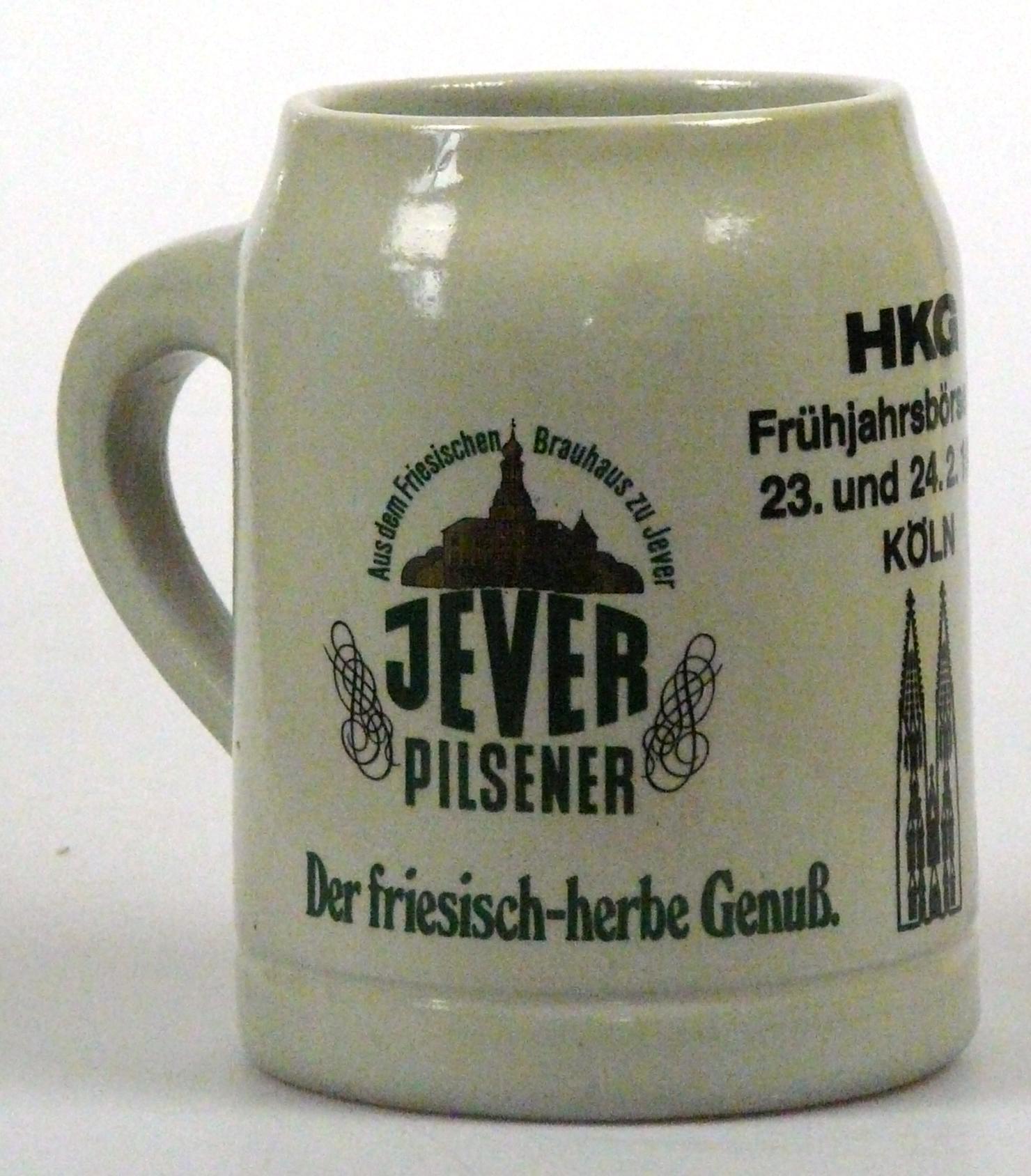 Attribut Wert Alter (min.) Alter (max.) Identifikation (Jever-Fan) ID I002093 / K0190 / B9 Typ Krug Attribute (Allgemein) Event HKG Frühjahrsbörse Form Krug / Seidel Füllstrich geprägt > 0,5l////FS Hersteller-Zeichen FS Inhalt (l) 0,50 Logo Pilsener 6 Maße HxBxT (cm) 12,8x9,9x9,9 Material Steingut Motiv Rundliche Schrift Ort Köln > Köln > Köln > Nordrhein-Westfalen > Deutschland Slogan Der friesisch herbe Genuß Sorte Pilsener Attribute (Zeitstempel) Eigene 19830223, 19830224 23.02.1983 24.02.1983
