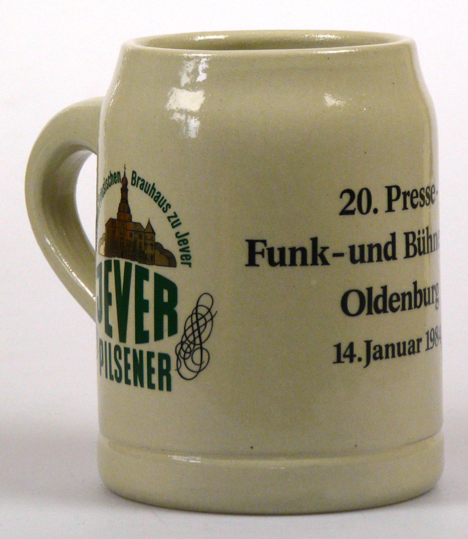 Attribut Wert Alter (min.) Alter (max.) Identifikation (Jever-Fan) ID I002095 / K0192 / B9 Typ Krug Attribute (Allgemein) Event Presseball Oldenburg Form Krug / Seidel Füllstrich geprägt > 0,5l////FS Hersteller-Zeichen FS Inhalt (l) 0,50 Logo Pilsener 6 Maße HxBxT (cm) 12,6x9,8x9,8 Material Steingut Ort Oldenburg (Oldb) > Oldenburg (Oldb) > Oldenburg (Oldb) > Niedersachsen > Deutschland Sorte Pilsener Attribute (Zeitstempel) Eigene 19840114 14.01.1984 14.01.1984