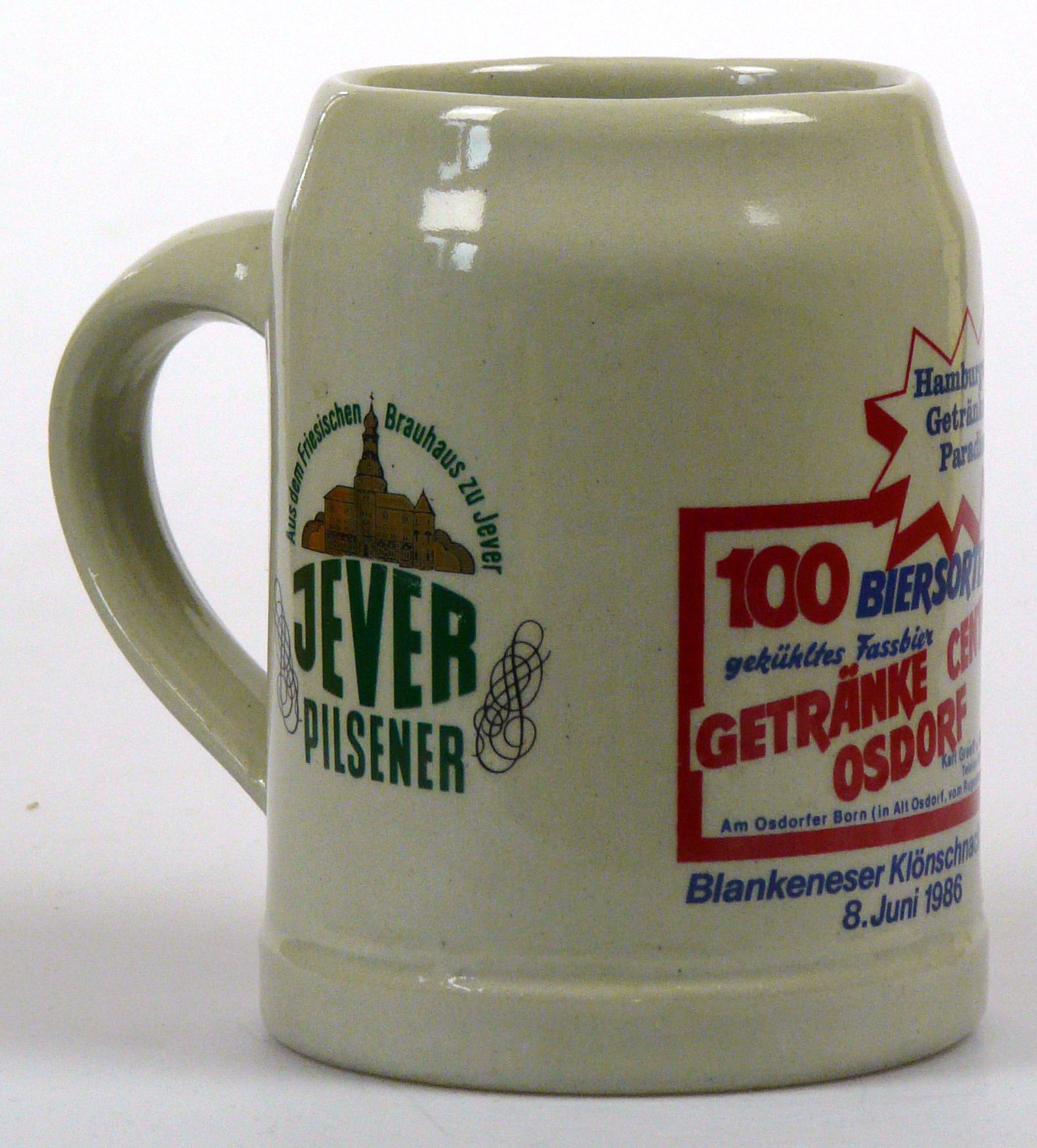 Attribut Wert Alter (min.) Alter (max.) Identifikation (Jever-Fan) ID I002102 / K0199 / B9 Typ Krug Attribute (Allgemein) Event Blankeneser Klönschnack Fest Form Krug / Seidel Füllstrich geprägt > 0,5l////sahm Herstellername SAHM GmbH & Co. KG Hersteller-Zeichen sahm Inhalt (l) 0,50 Logo Pilsener 6 Maße HxBxT (cm) 12,7x9,7x9,7 Material Steingut Ort Hamburg > Hamburg > Hamburg > Hamburg > Deutschland Sorte Pilsener Attribute (Zeitstempel) Eigene 19860608 08.06.1986 08.06.1986