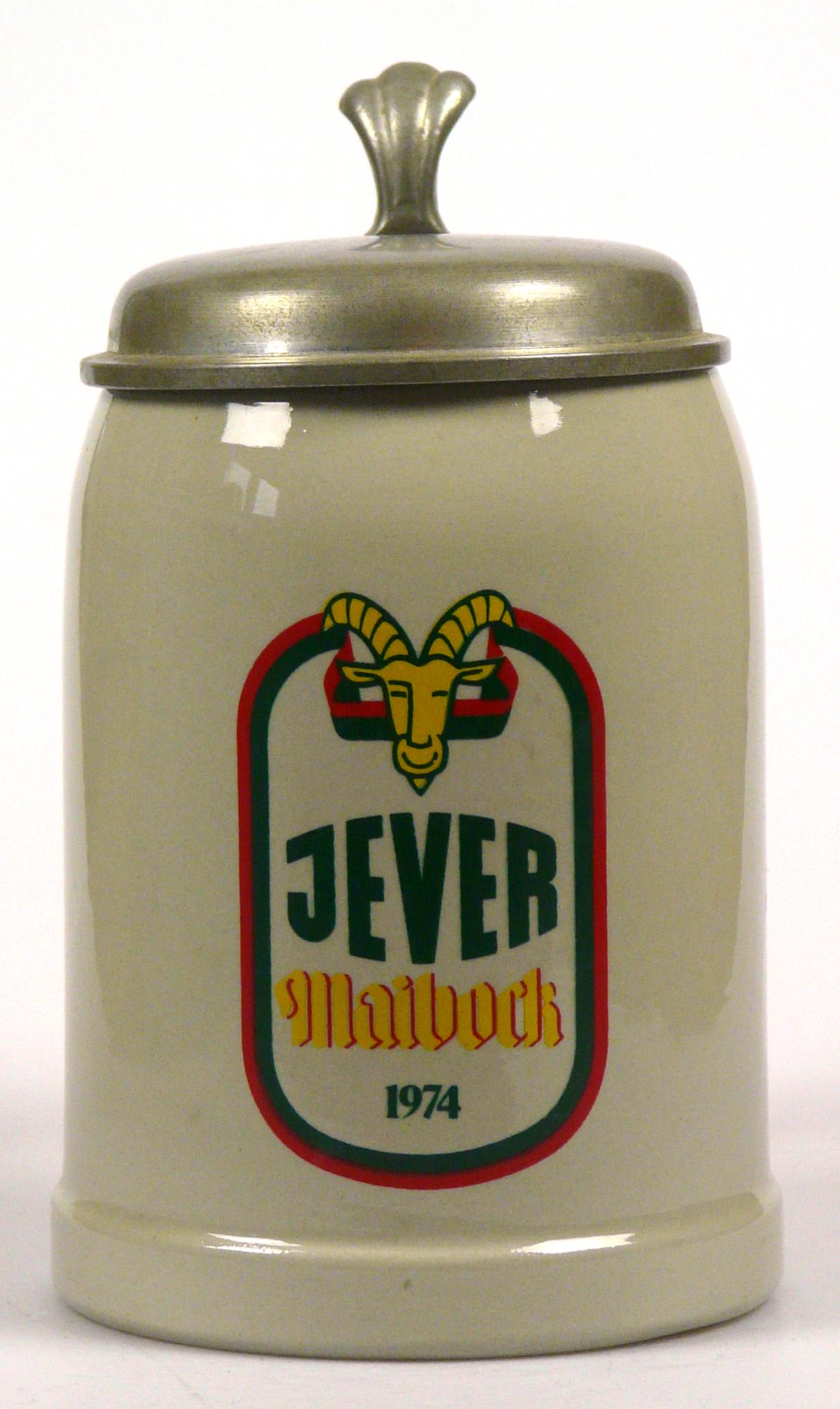 Attribut Wert Alter (min.) Alter (max.) Identifikation (Jever-Fan) ID I002109 / K0204 / B14 Typ Krug Attribute (Allgemein) Form Krug / Seidel Füllstrich geprägt > 0,5l//// Hersteller-Zeichen WW Inhalt (l) 0,50 Logo Maibock 1 Maße HxBxT (cm) 16,6x10,1x10,1 Material Steingut Material Zinn Sorte Maibock Attribute (Zeitstempel) Eigene 19740000 1974 1974