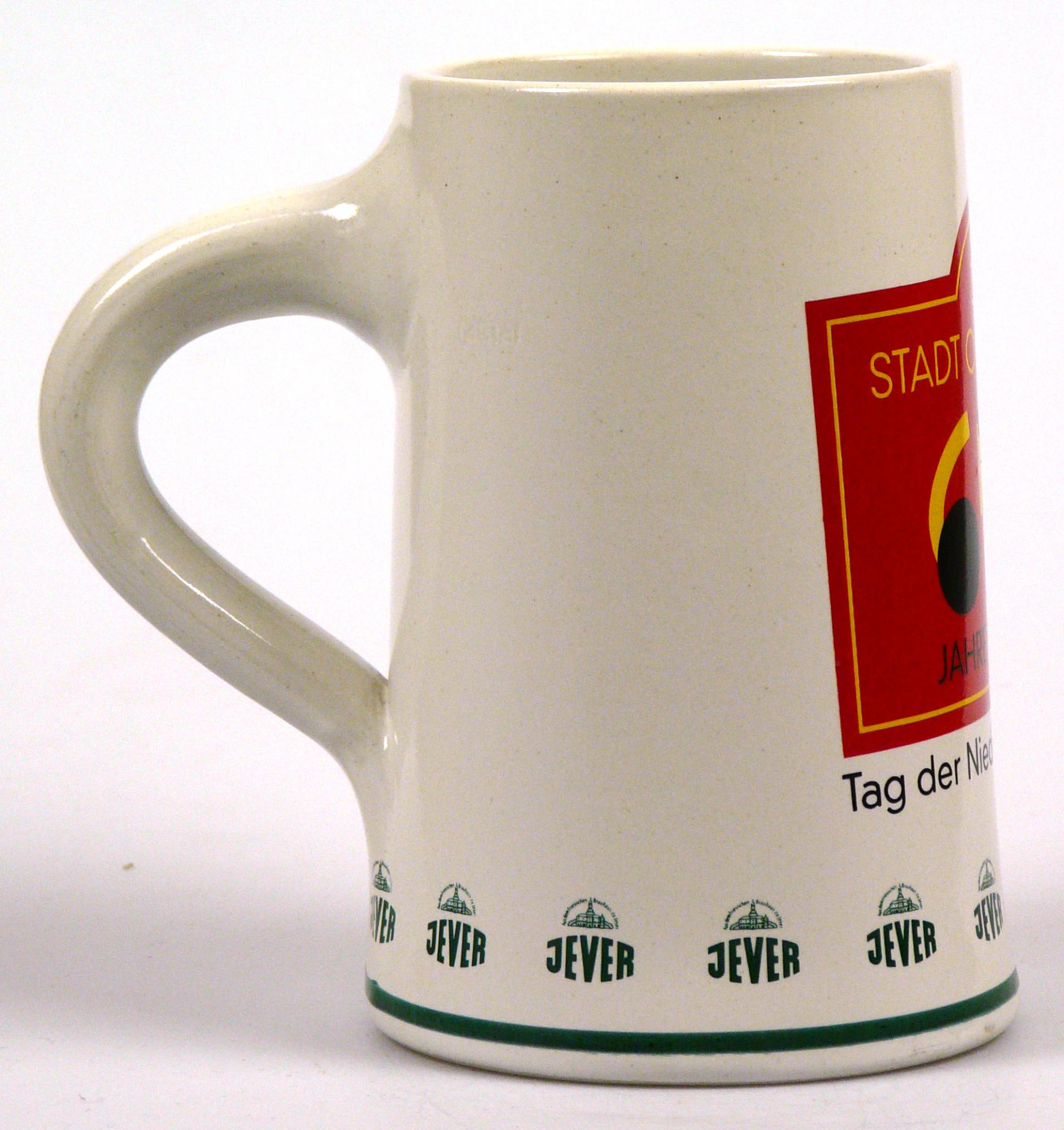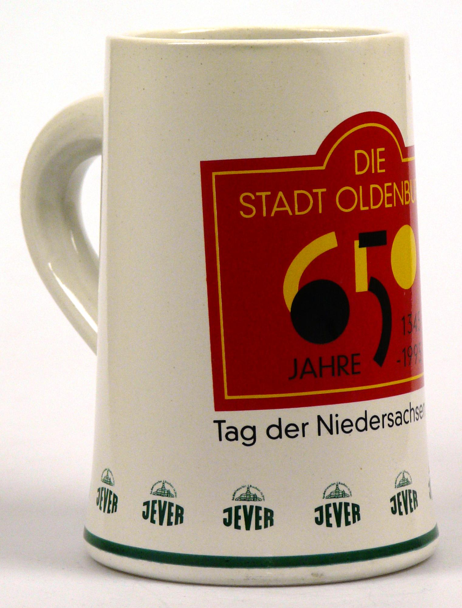 Attribut Wert Alter (min.) Alter (max.) Identifikation (Jever-Fan) ID I002115 / K0210 / B13 Typ Krug Attribute (Allgemein) Event 650 Jahre Oldenburg Event Tag der Niedersachsen Form Krug / Seidel Füllstrich geprägt > 0,5l////rastal Herstellername Rastal GmbH & Co. KG Hersteller-Zeichen rastal Inhalt (l) 0,50 Logo Dachmarke 2 Maße HxBxT (cm) 14,8x10,1x10,1 Material Steingut Ort Oldenburg (Oldb) > Oldenburg (Oldb) > Oldenburg (Oldb) > Niedersachsen > Deutschland Sorte (Dachmarke) Attribute (Zeitstempel) Eigene 19950000 1995 1995