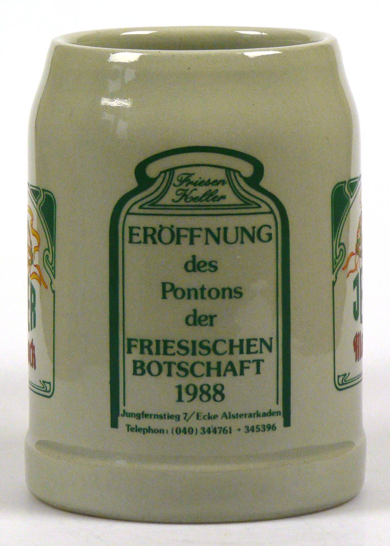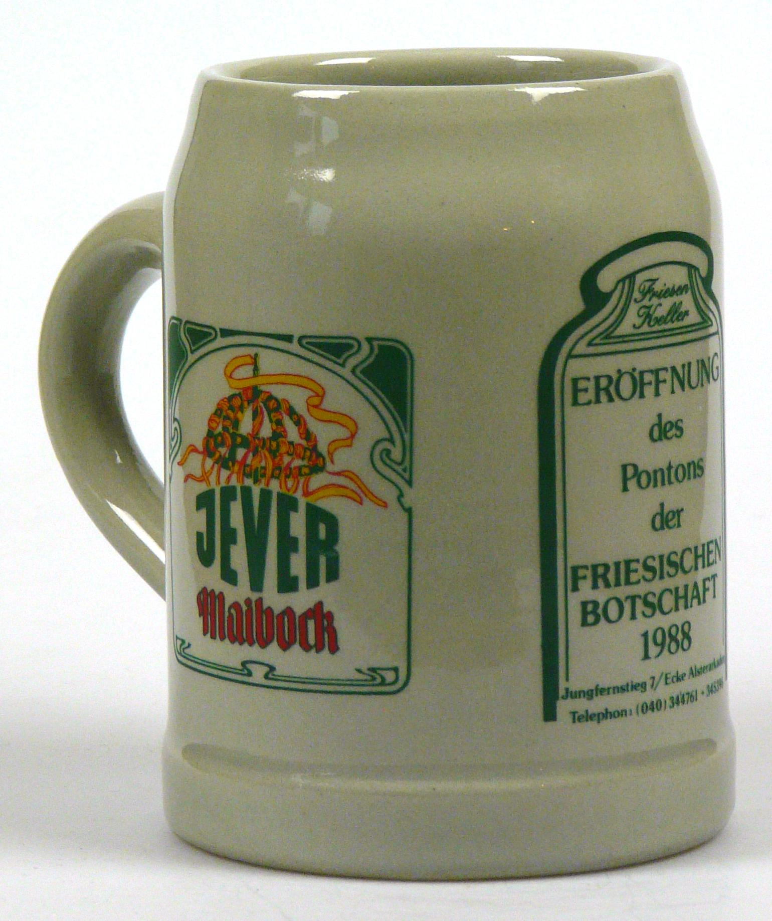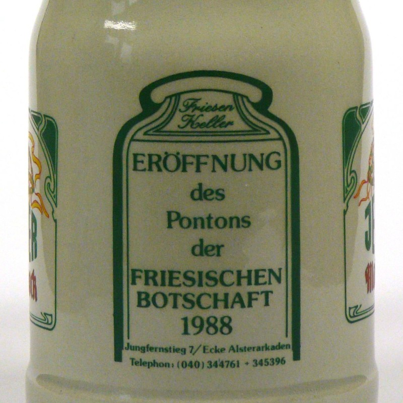 Attribut Wert Alter (min.) Alter (max.) Identifikation (Jever-Fan) ID I002132 / K0227 / B12 Typ Krug Attribute (Allgemein) Event Friesische Botschaft - Ponton-Eröffnung Form Krug / Seidel Füllstrich geprägt > 0,5l////sahm Gastronomie Friesen-Keller Herstellername SAHM GmbH & Co. KG Hersteller-Zeichen sahm Inhalt (l) 0,50 Logo Maibock 3 Maße HxBxT (cm) 13,1x9,9x9,9 Material Steingut Ort Hamburg > Hamburg > Hamburg > Hamburg > Deutschland Sorte Maibock Attribute (Zeitstempel) Eigene 19880000 1988 1988