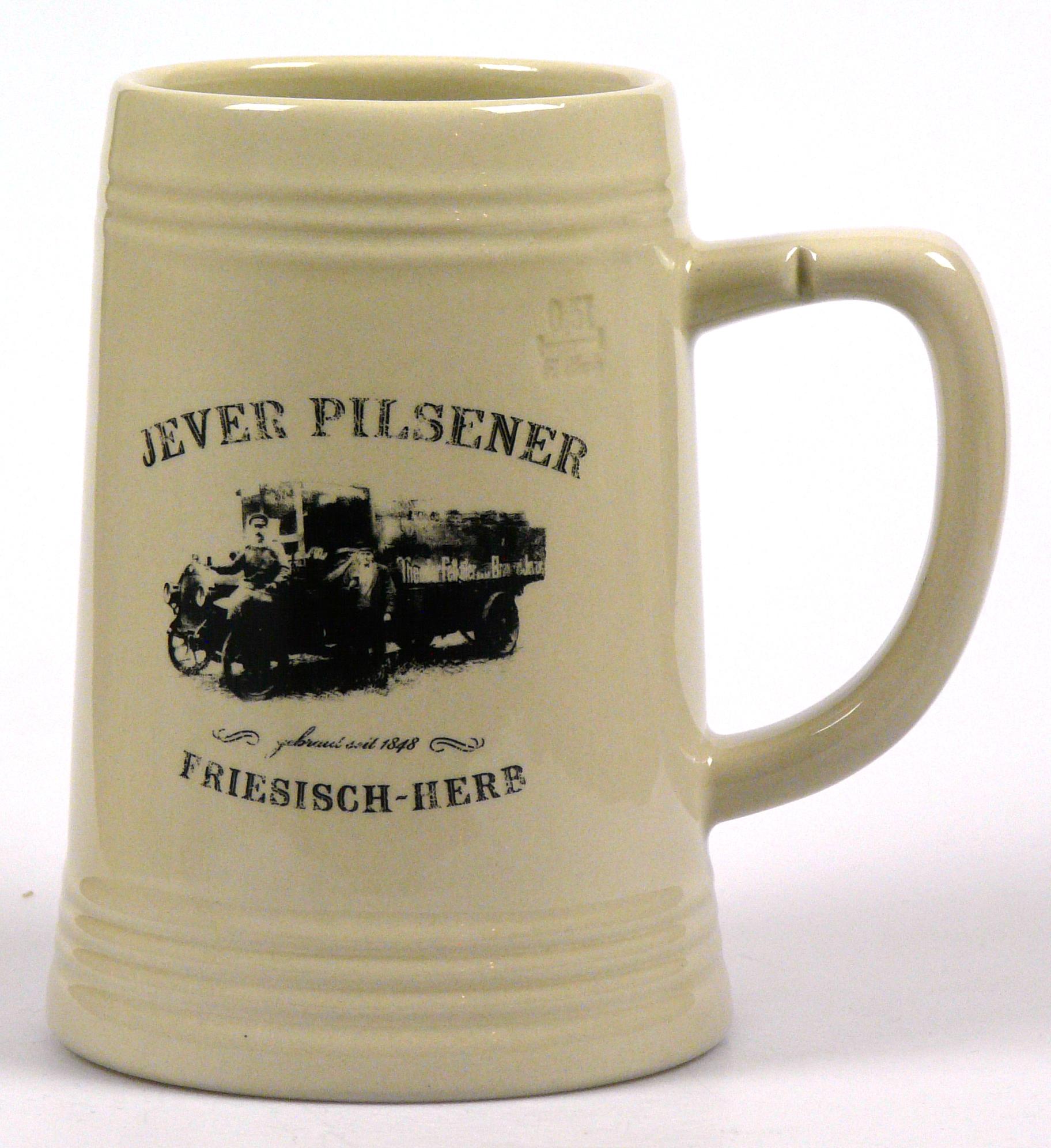 Attribut Wert Alter (min.) Alter (max.) Identifikation (Jever-Fan) ID I002160 / K0255 / B10 Typ Krug Attribute (Allgemein) Form Krug / Seidel Füllstrich geprägt > 0,5l////F. Herb Hersteller-Zeichen F. Herb Inhalt (l) 0,50 Maße HxBxT (cm) 14,8x10,6x10,6 Material Steingut Slogan Friesisch herb Sorte (Dachmarke) Attribute (Zeitstempel) Eigene 20121200 12/2012 12/2012