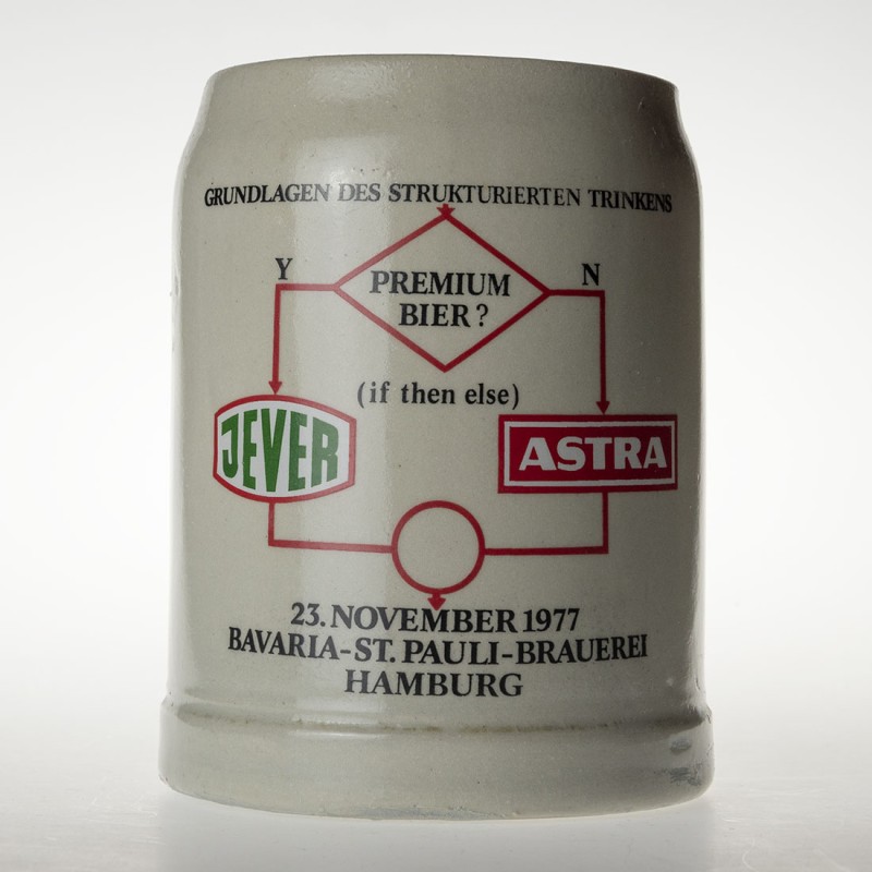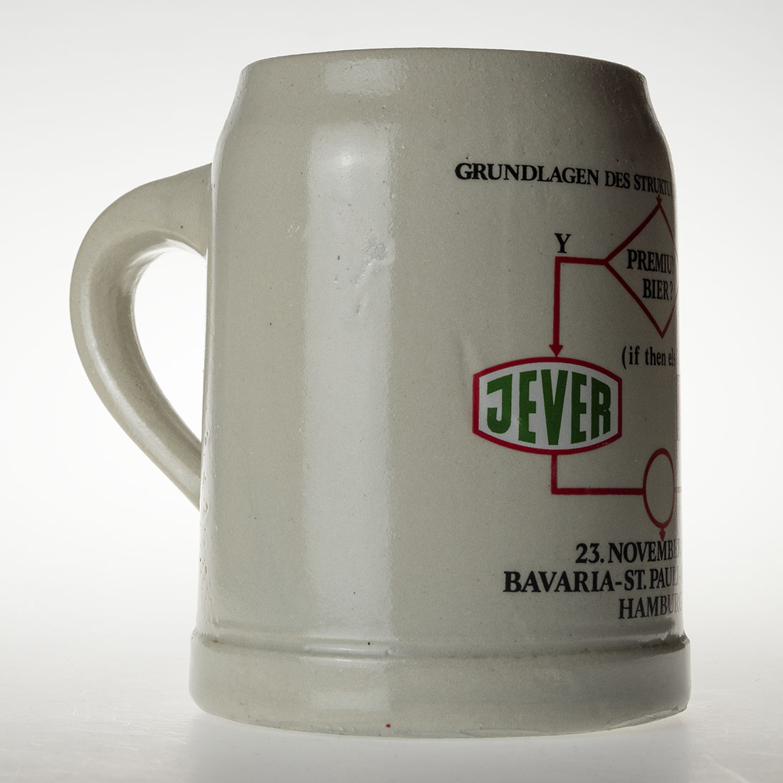 Attribut Wert Alter (min.) Alter (max.) Identifikation (Jever-Fan) ID I002191 / K0286 / B19 Typ Krug Attribute (Allgemein) Form Krug / Seidel Füllstrich geprägt > 0,5l////FS Hersteller-Zeichen FS Inhalt (l) 0,50 Logo Dachmarke 1 Maße HxBxT (cm) 12,8x10,1x10,1 Material Steingut Ort Hamburg > Hamburg > Hamburg > Hamburg > Deutschland Sorte (Dachmarke) Attribute (Zeitstempel) Eigene 19771123 23.11.1977 23.11.1977