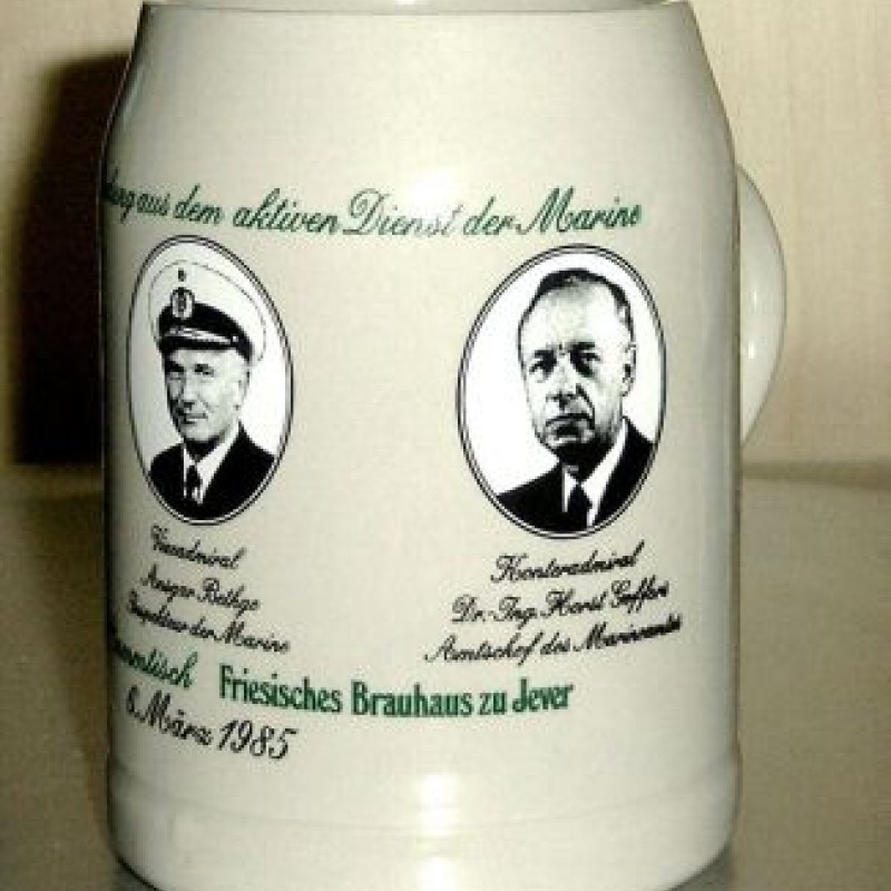 Zur Verabschiedung aus dem aktiven Dienst der Marine / Vizeadmiral Günther Fromm Befehlshaber der Flotte / Vizeadmiral Ansgar Bethge Inspekteur der Marine / Konteradmiral Dr.-Ing- Horst Goffer Amtschef des Marineamtes / Bremer Stammtisch / Friesisches Brauhaus zu Jever / 6. März 1985