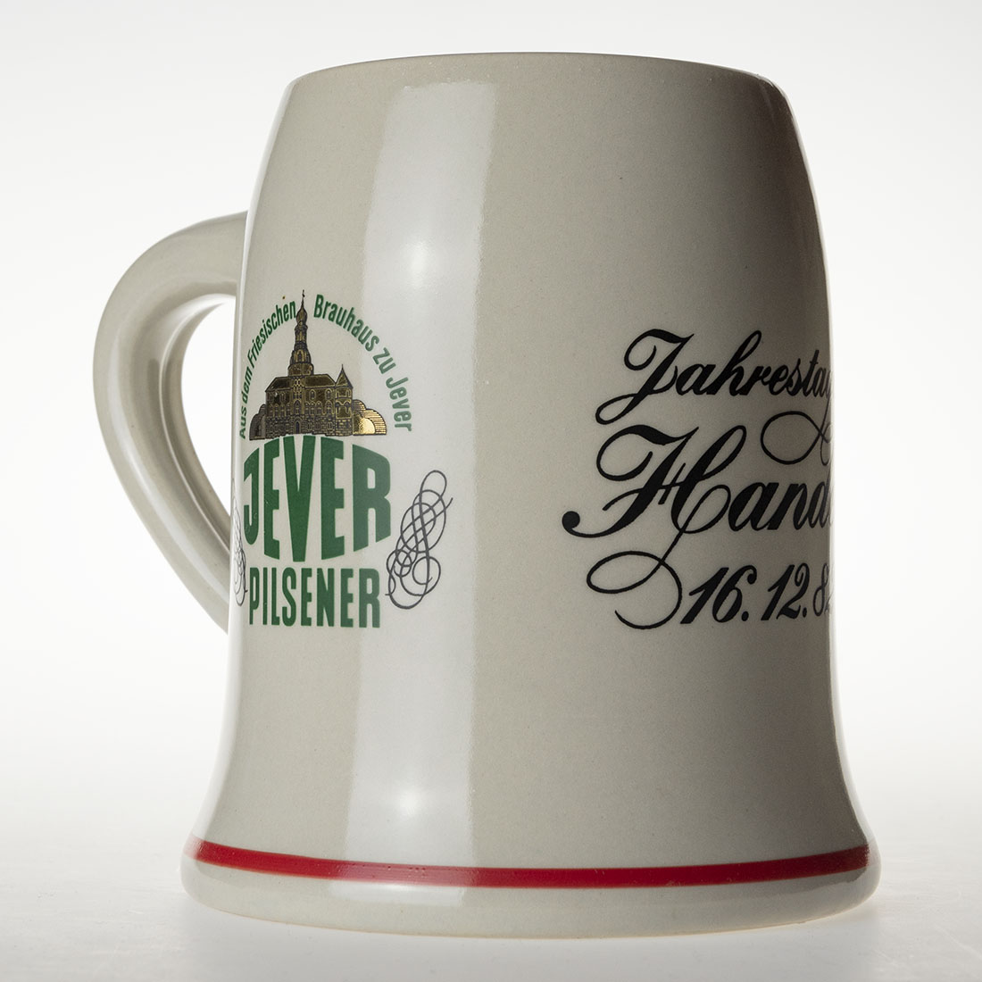 Attribut Wert Alter (min.) Alter (max.) Identifikation (Jever-Fan) ID I002242 / K0329 / Typ Krug Attribute (Allgemein) Event Jahrestagung Handel Form Krug / Seidel Füllstrich geprägt > 0,5l////rastal Herstellername Rastal GmbH & Co. KG Hersteller-Zeichen rastal Inhalt (l) 0,50 Logo Pilsener 6 Maße HxBxT (cm) 12,9x11,1x11,1 Material Steingut Sorte Pilsener Attribute (Zeitstempel) Eigene 19821216 16.12.1982 16.12.1982