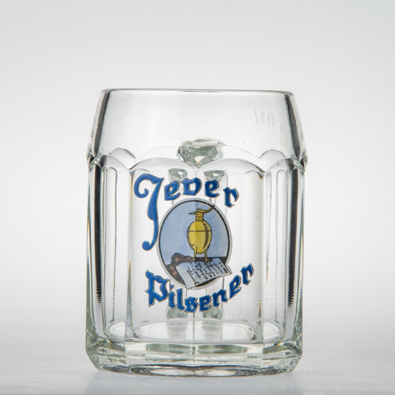 Attribut Wert Alter (min.) Alter (max.) Identifikation (Jever-Fan) ID I002760 / G0487 / B31 Typ Glas Attribute (Allgemein) Form Krug / Seidel Füllstrich geätzt > 0,5l//// Inhalt (l) 0,50 Logo Pilsener 25 Maße HxBxT (cm) 12,3x9,6x9,6 Material Glas Motiv Jever Pilsener in blauer Schrift Motiv Kiebitz Sorte Pilsener