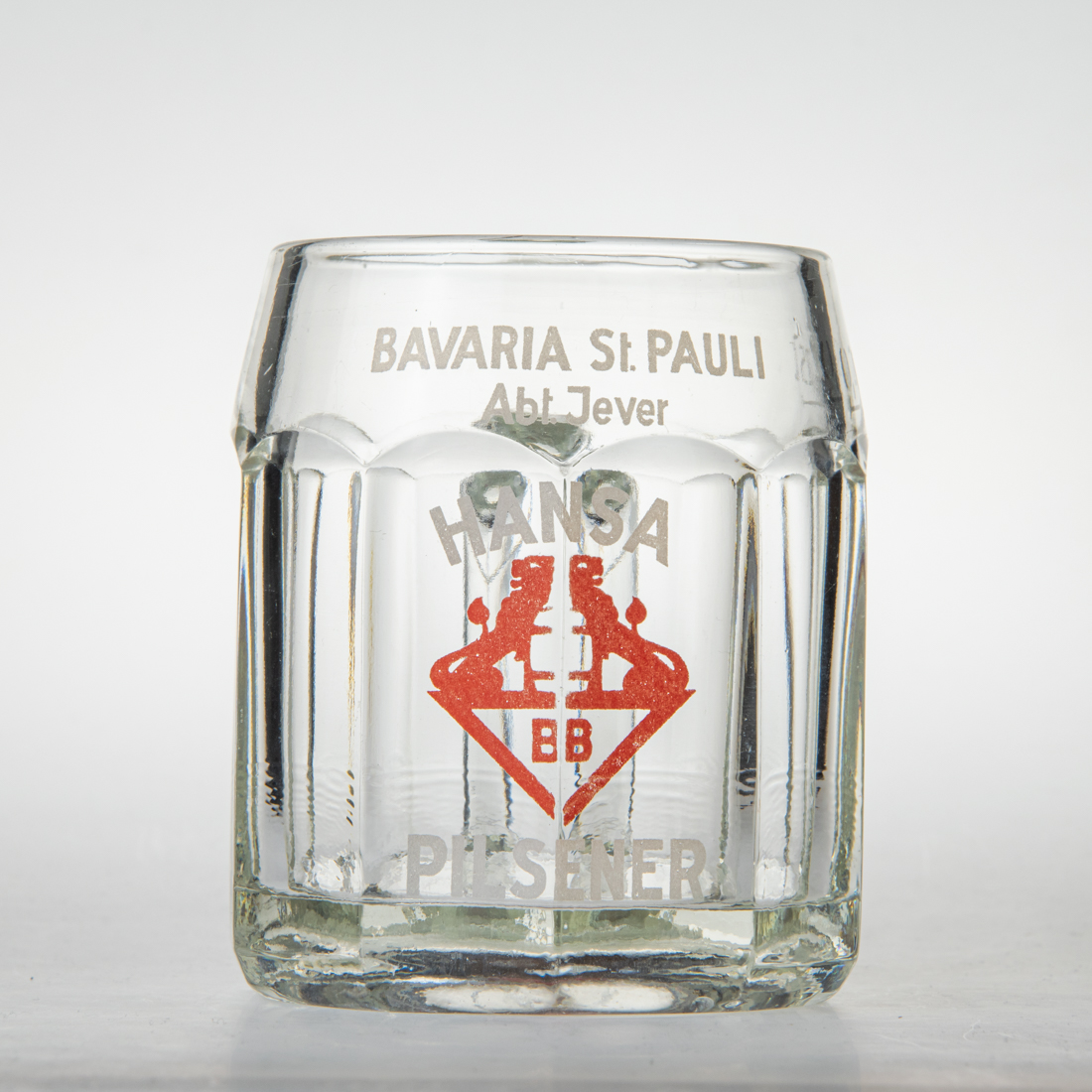 Attribut Wert Alter (min.) Alter (max.) Identifikation (Jever-Fan) ID I002763 / G0490 / B31 Typ Glas Attribute (Allgemein) Form Krug / Seidel Füllstrich geätzt > 0,25l//// Inhalt (l) 0,25 Logo Bavaria 1 Material Glas Name Brauerei BAVARIA St. PAULI Abt. Jever Sorte Pilsener