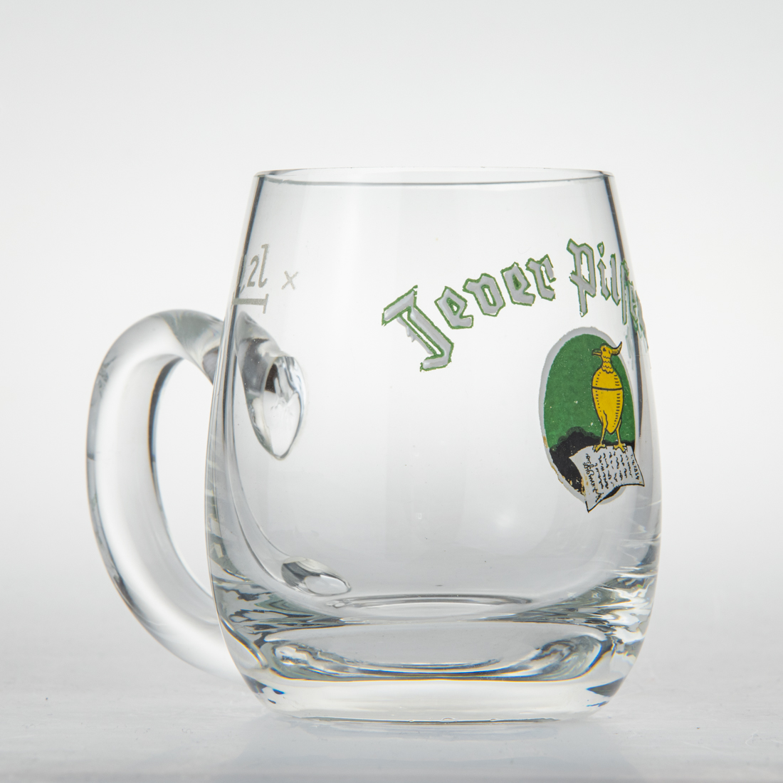 Attribut Wert Alter (min.) Alter (max.) Identifikation (Jever-Fan) ID I002770 / G0497 / B31 Typ Glas Attribute (Allgemein) Form Krug / Seidel Füllstrich geätzt > 0,2l x//// Hersteller-Zeichen X Inhalt (l) 0,20 Logo Pilsener 24 Maße HxBxT (cm) 9,4x8,0x8,0 Material Glas Motiv Jever Pilsener in Frakturschrift Motiv Kiebitz Sorte Pilsener