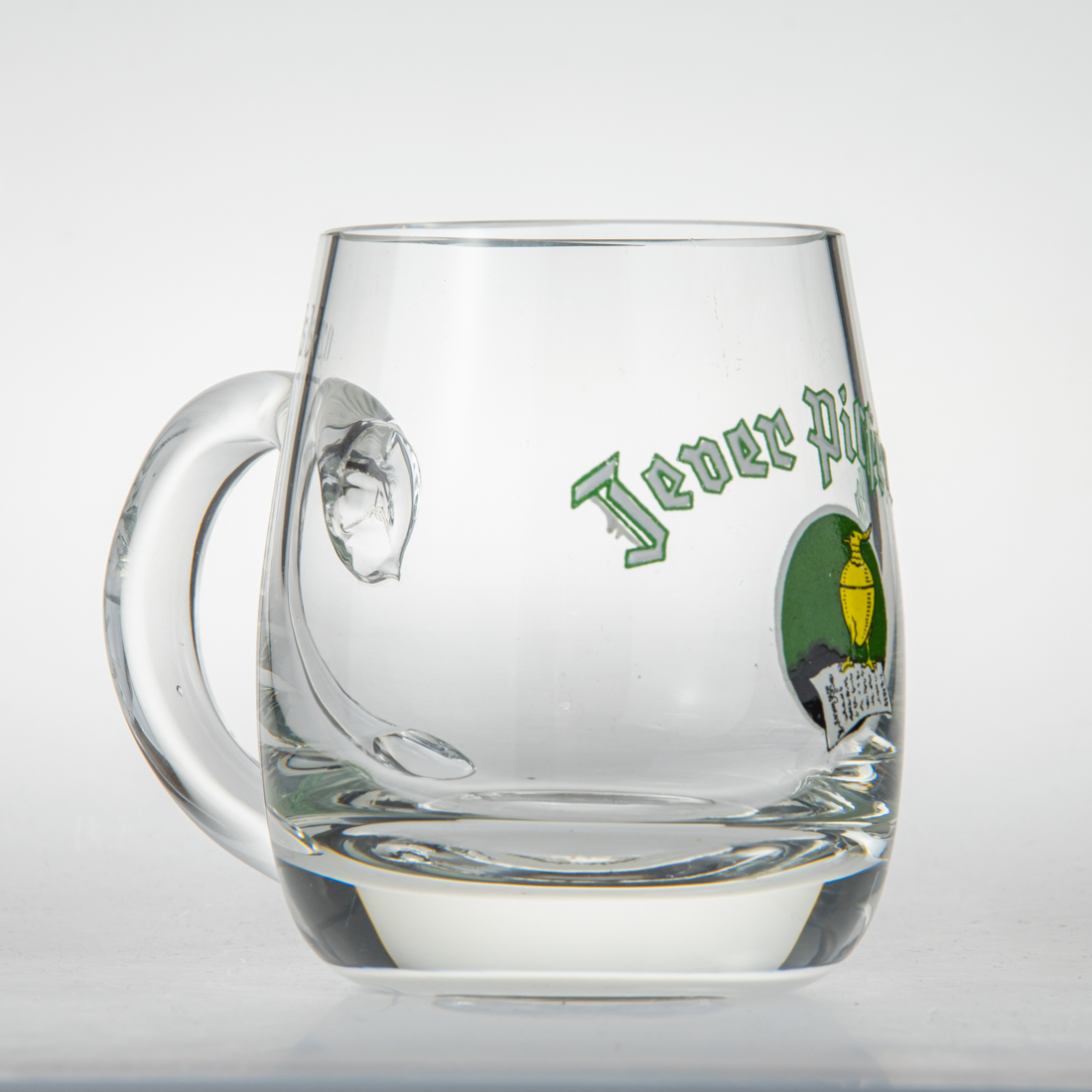 Attribut Wert Alter (min.) Alter (max.) Identifikation (Jever-Fan) ID I002771 / G0498 / B31 Typ Glas Attribute (Allgemein) Form Krug / Seidel Füllstrich geätzt > 0,25l x//// Hersteller-Zeichen X Inhalt (l) 0,25 Logo Pilsener 24 Maße HxBxT (cm) 9,8x8,4x8,4 Material Glas Motiv Jever Pilsener in Frakturschrift Motiv Kiebitz Sorte Pilsener