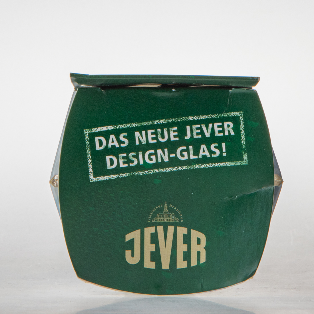 Das Glas wurde zunächst als Kastenbeilage verschenkt und danach im Jever-Shop verkauft.