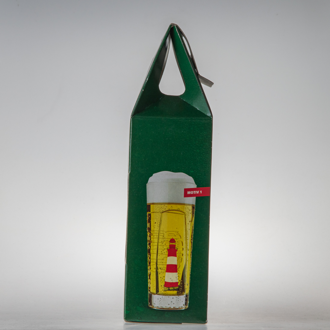 Der Leuchtturm auf der Vorderseite wird sichtbar bzw. unsichtbar, je nach Temperatur des Glases. Das Glas wurde an Gastronomen verschenkt.