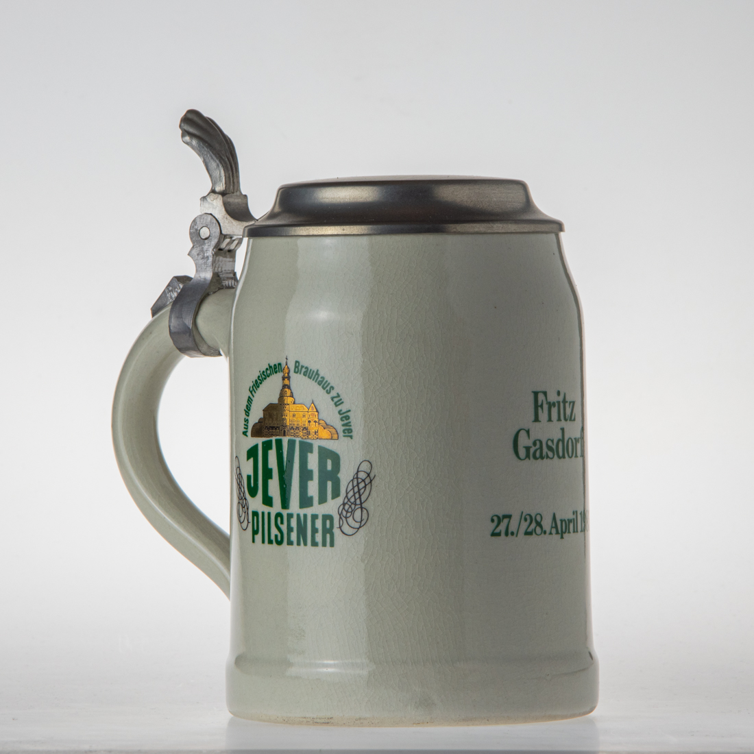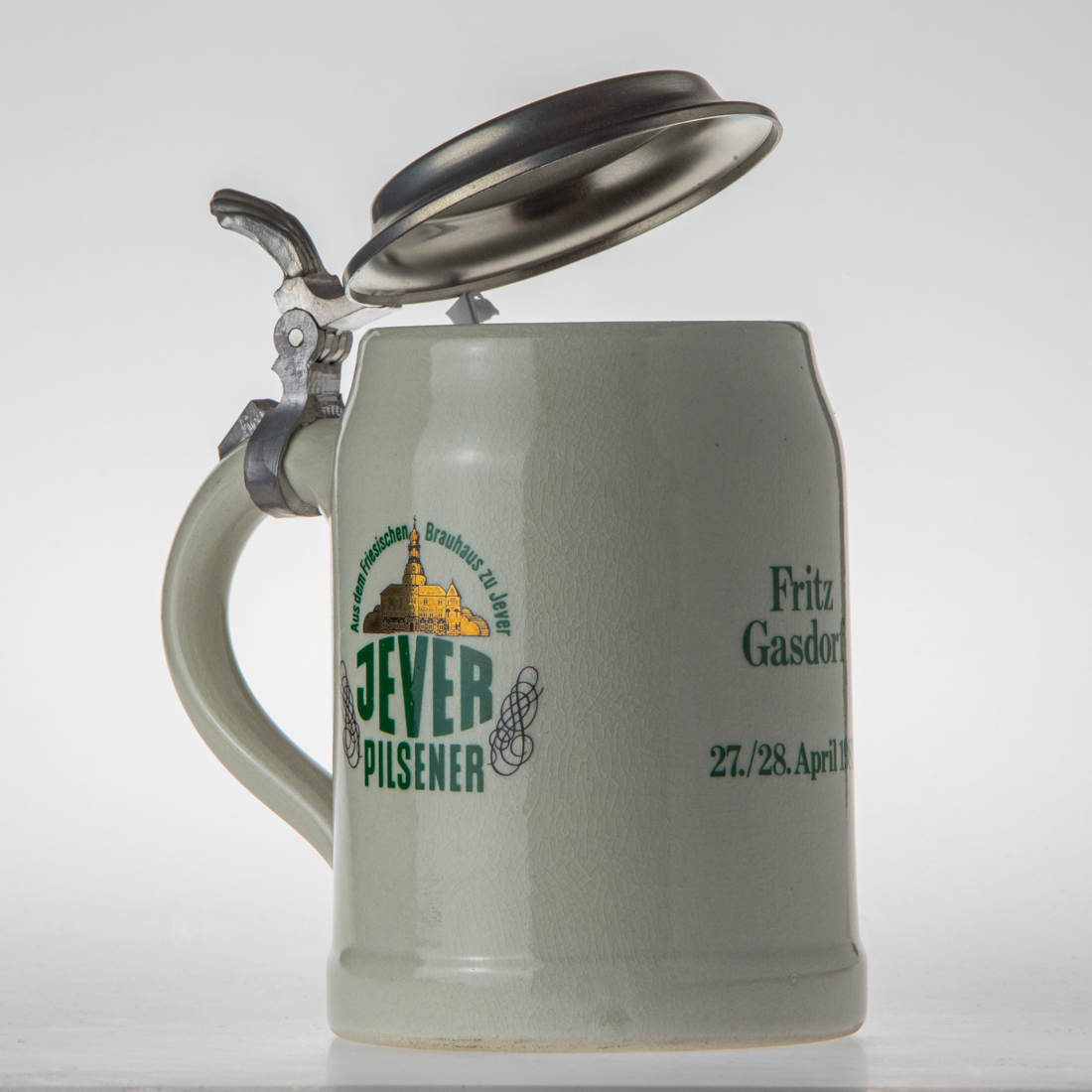 Attribut Wert Alter (min.) Alter (max.) Identifikation (Jever-Fan) ID I002846 / K0349 / B47 Typ Krug Attribute (Allgemein) Form Krug / Seidel Füllstrich geprägt > 0,5l////Sahm Herstellername SAHM GmbH & Co. KG Hersteller-Zeichen sahm Inhalt (l) 0,50 Logo Pilsener 6 Maße HxBxT (cm) 16,6x10,1x10,1 Material Steingut Material Zinn Sorte Pilsener Attribute (Zeitstempel) Eigene 19850427, 19850428 27.04.1985 28.04.1985