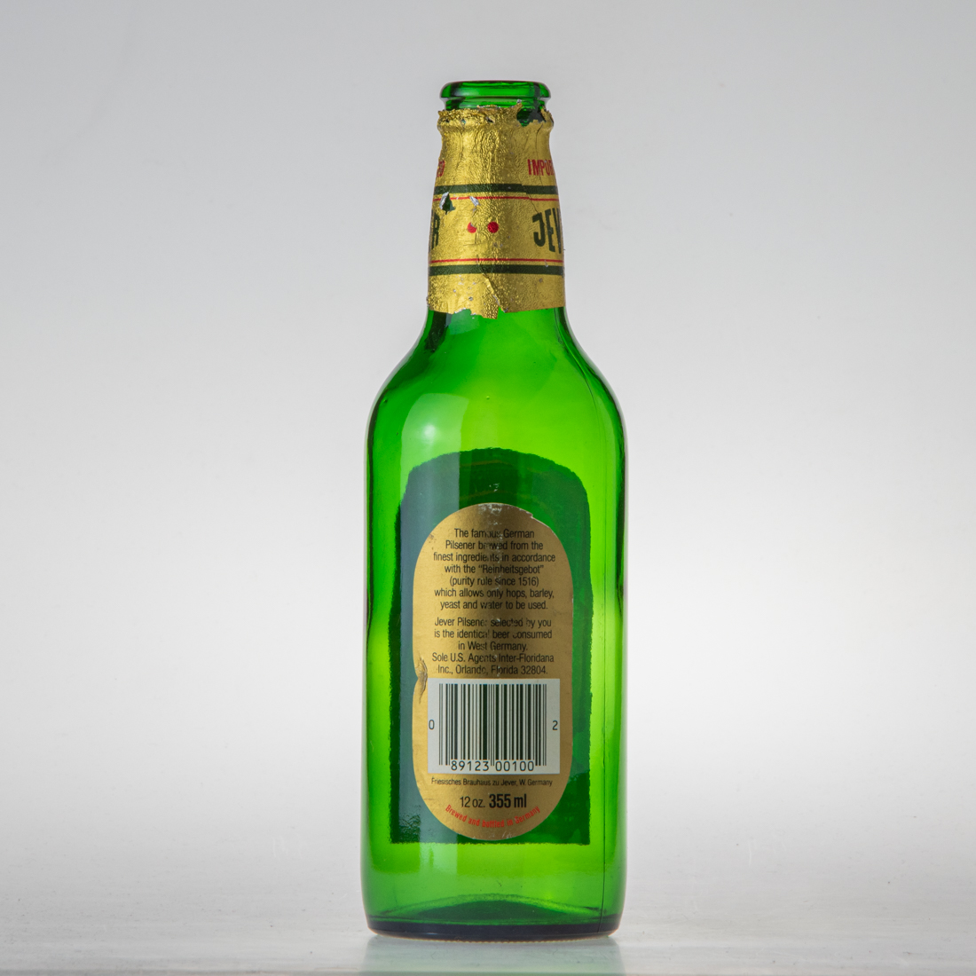 IMPORTED / JEVER / BEER BIERE BIRRA CERVEZA / JEVER / PILSENER / GERMANY’s FAVORITE PILSENER BEER / ALL NATURAL / 12 oz. / Product of W.-Germany