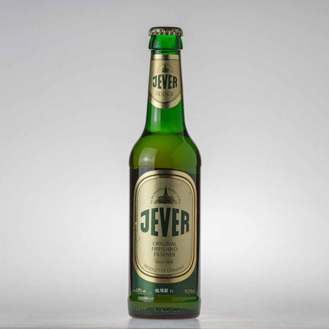 Aus dem Friesischen Brauhaus zu Jever / JEVER / PILSENER / Aus dem Friesischen Brauhaus zu Jever / JEVER / ORIGINAL FRIESLAND PILSENER / Since 1848 / PRODUCT OF GERMANY / alc. 4,9% vol / 11.2 fl. Oz