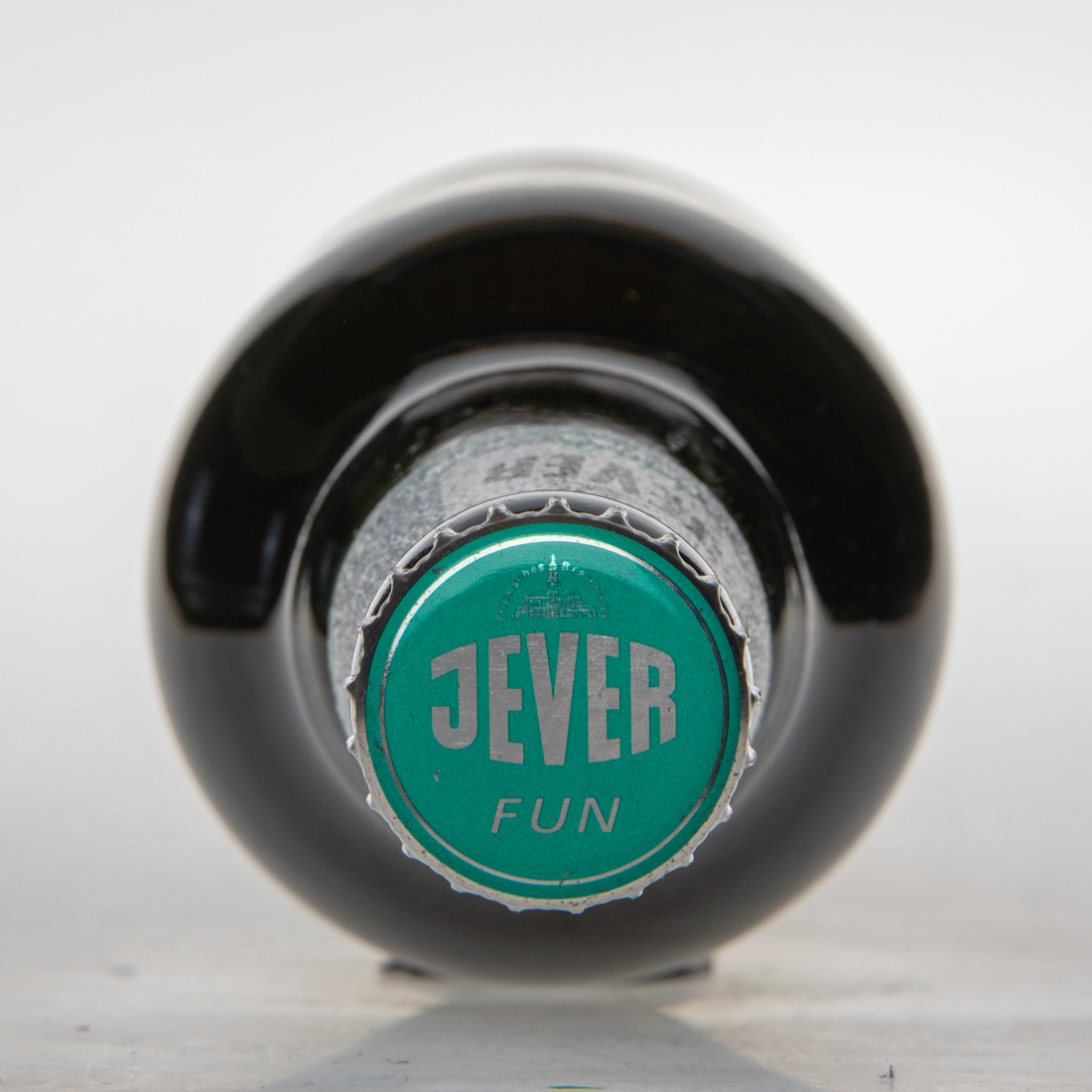 Friesisches Brauhaus / JEVER / FUN / Jever Fun ist das alkoholfreie und kalorienarme Pilsener mit dem einzigartigen un unverwechselbar herben Charakter. / 100ml enthalten durchschnittlich Brennwert 76kJ (18kcal) Eiweiß 0,47g Kohlenhydrate 2,8g Fett 0,0g / Gebraut nach dem Deutschen Reinheitsgebot / Zutaten: Wasser, Gerstenmalz, Hopfenextrakt, Gärungskohlensäure / Friesisches Brauhaus zu Jever Elisabethufer 18 26441 JEVER, GERMANY www.jever.de / e 0,5l / Mindestens haltbar bis: / MEHRWEGPFANDFLASCHE / 4 008948 194016