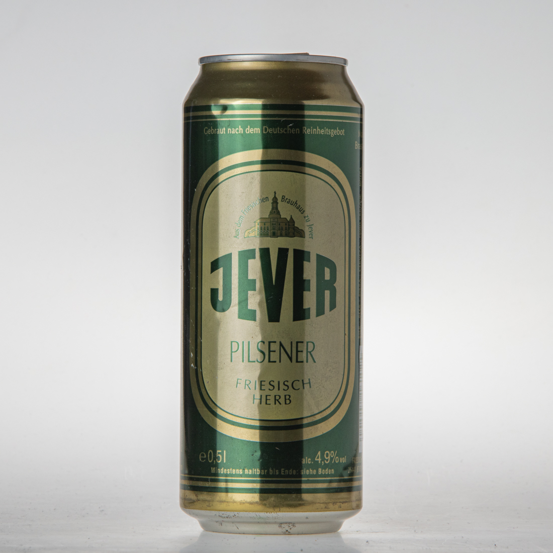 BIER BEER BIRRA CERVEZA … / Zutaten: Wasser, Gerstenmalz, Hopfenextrakt, Hopfen / Ingredients: water, malt, hops extract, hops / Ingredienti: acqua, malto, extracto de lupolo, lupolo / Ingredientes: agua, malta, extracto de lupolo, lupolo / … / CAT I, alc. 4,9% Gradi sacc. 11,9% Ext. sec. prim. 11,4% … 11,4 … / 11.6 fl. oz. imp. 0,5l 50cl 500ml / … / Made in Germany Brassee en Allemagne / FRIESISCHES BRAUHAUS ZU JEVER 26441 JEVER, GERMANY www.jever.de / 4 008948 161025 / Best before end: see bottom of can / Da consumarsi preferibilmente: vedi fondo / Consumir preferentemente antes de: ver base de la lata / … / FE DOSEN RECYCLING DER GRÜNE PUNKT / Kühl lagern
