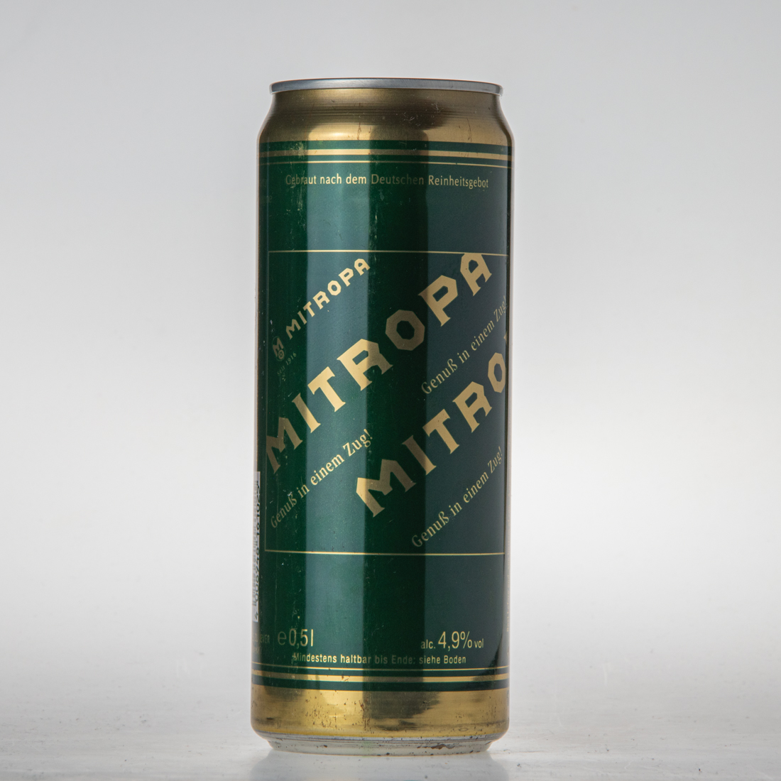 Gebraut nach dem Deutschen Reinheitsgebot / MITROPA seit 1916 Genuß in einem Zug! / e 0,5l alc. 4,9% vol / Mindestens haltbar bis Ende: siehe Boden