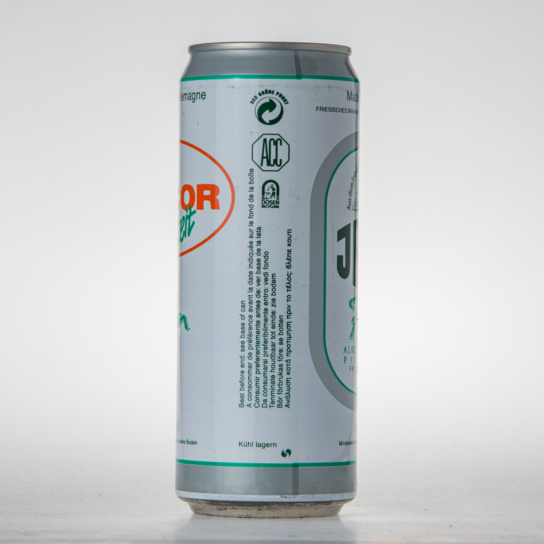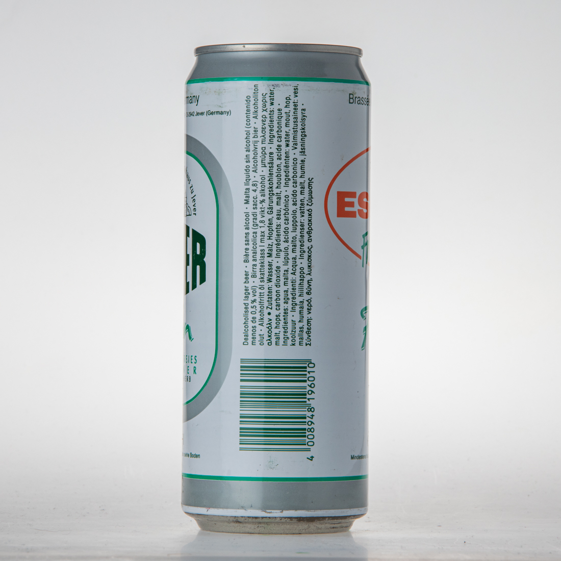 Dealcoholised lager beer Biere sans alcool Malta liquido sin alcohol (contenido meno de 0,5% vol) Birra analcolica (gradi sacc. 4,8) Alcoholvrij bier Alkoholiton olut Alkoholfritt öl skatteklass I max 1,8 vikt-% alkohol … / Zutaten: Wasser, Malz, Hopfen, Gärungskohlensäure. / Ingredients: water, malt, hops, carbon dioxide / Ingredients: eau, malt, houblon, acide carbonique / INgredientes: agua, malta, lupolo, acido carbonico / Ingredienten: water, mout, hop, koolzuur / Ingredienti: acqua, malto, luppolo, acido carbonico Lamistusaineet: vesi, mallas, humala, hillihappo Ingredienser: vatten, malt, humle, jäsningskolsyra … / 4 008948 196010 / Best before end: see base of can / A consommer de preference avant de la date indiquee sur le fond de la boite / Consumir preferentemente antes de: ver base de la lata / Da consumarsi preferibilmente entro: vedi fondo / Tenminste houdbaar tot einde: zie bodem / Bör förbrukas före: se botten / DER GRÜNE PUNKT ACC DOSEN RECYCLING / Kühl lagern