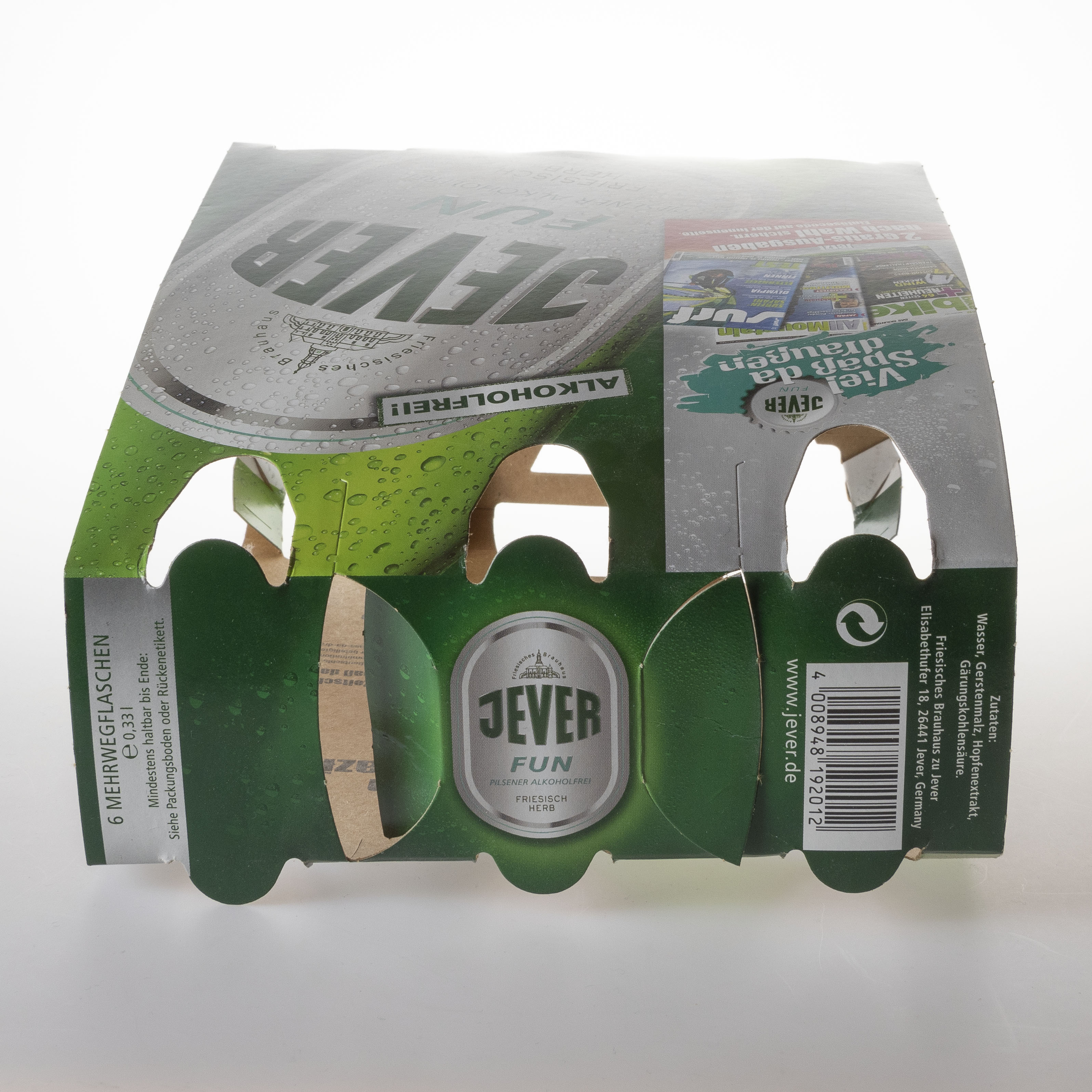 Friesisches Brauhaus / JEVER / FUN / Viel Spaß da draußen / Jetzt 2 Gratis-Ausgaben nach Wahl sichern. Einlösecode auf der Innenseite. / ALKOHOLFREI! / Friesisches Brauhaus / JEVER / FUN / PILSENER ALKOHOLFREI / FRIESISCH HERB