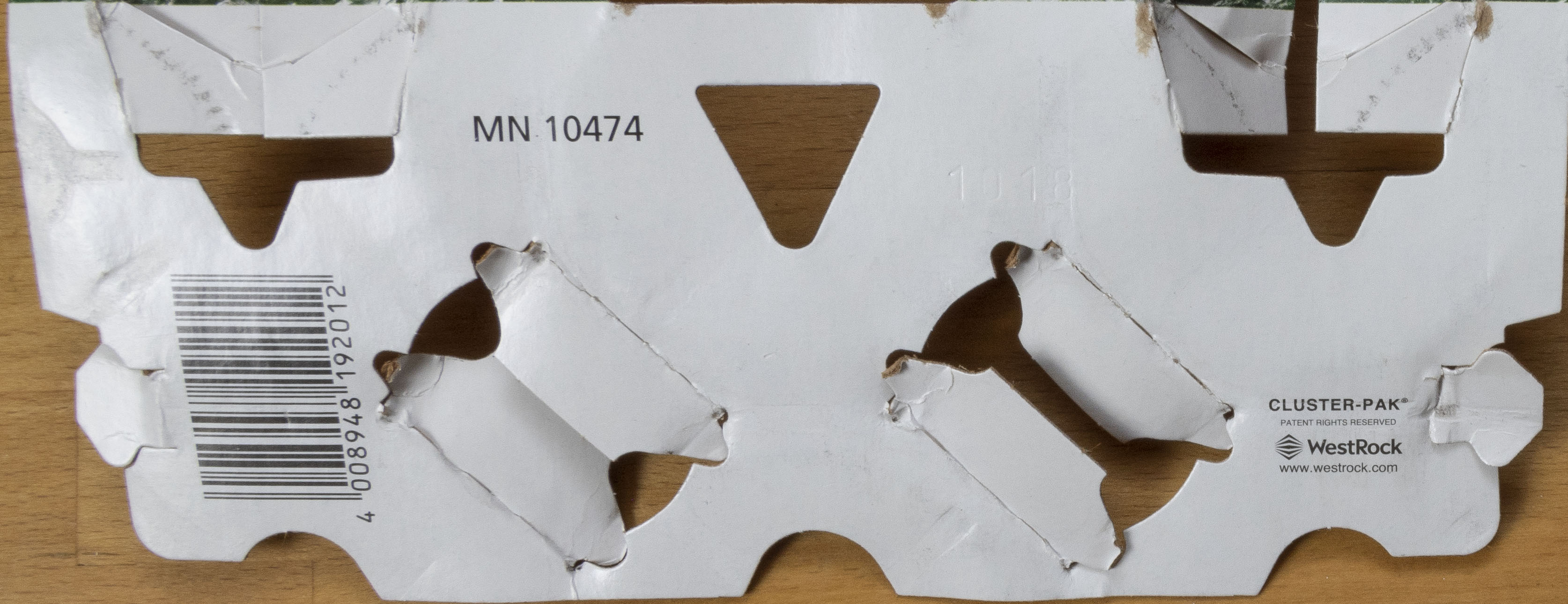 MN 10474 / 4 008948 192012 / CLUSTER-PAK / PATENT RIGHTS RESERVED / WestRock / www.westrock.com