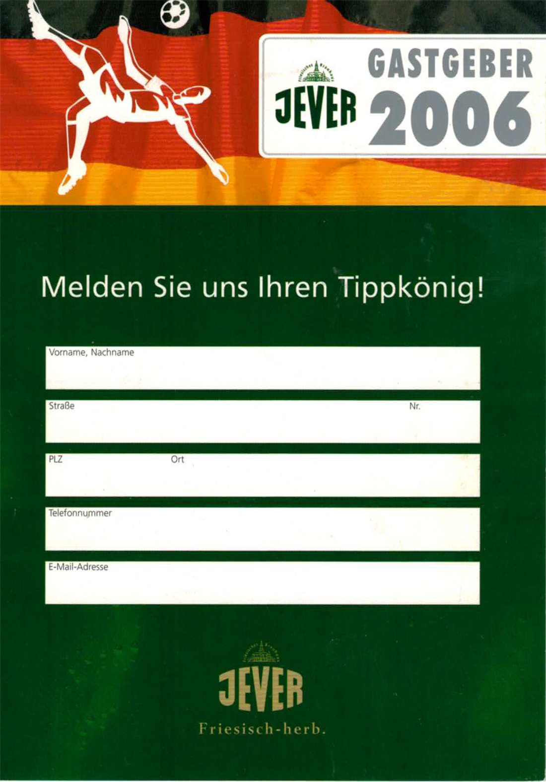 Friesisches Brauhaus / JEVER / GASTGEBER 2006 / Melden Sie uns Ihren Tippkönig! / Vorname, Nachname / Straße / Nr. / PLZ / Ort / Telefonnummer / E-Mail-Adresse / Friesisches Brauhaus / JEVER / Friesisch-herb.