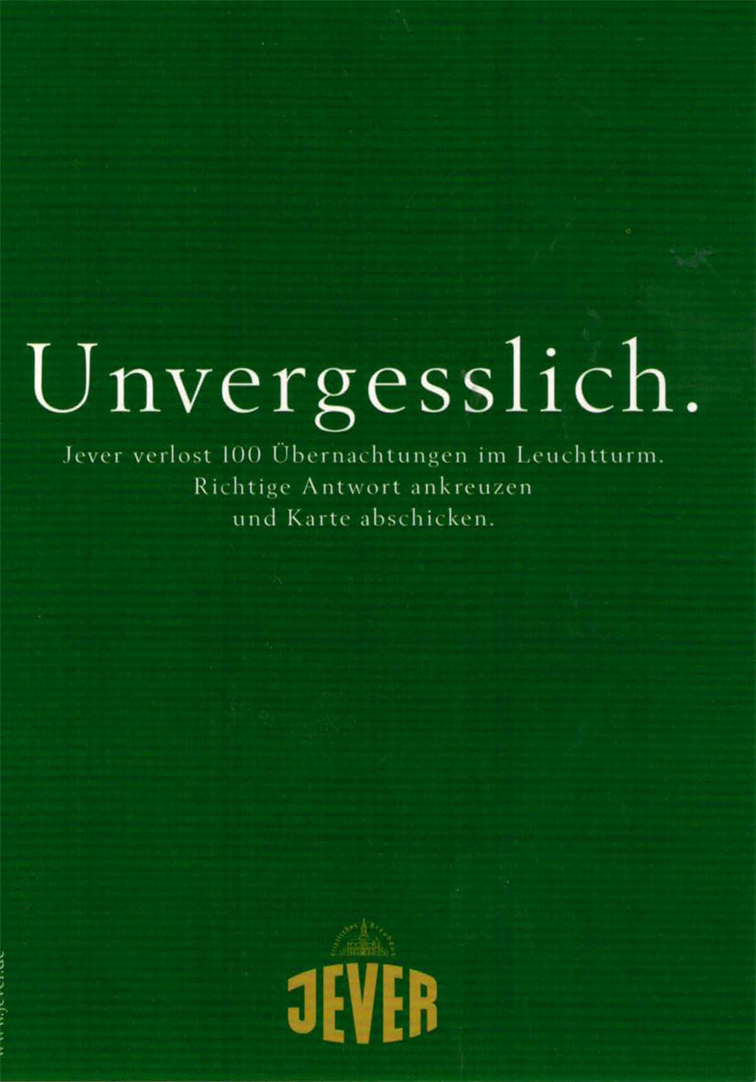 Luv. / Jever verlost 100 Übernachtungen im Leuchtturm. Richtige Antwort ankreuzen und Karte abschicken. / www.jever.de / Friesisches Brauhaus / JEVER