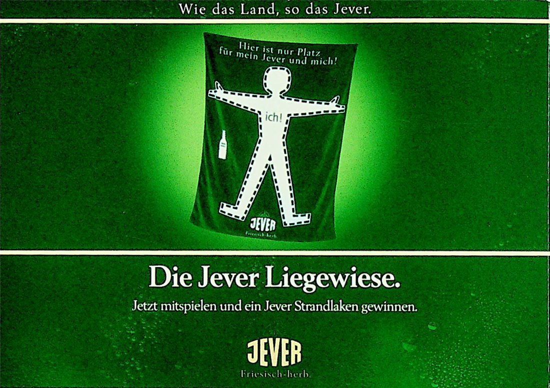 Wie das Land, so das Jever. / Die Jever Liegewiese. / Jetzt mitspielen und ein Jever Strandlaken gewinnen. / Friesisches Brauhaus / JEVER / Friesisch-herb.