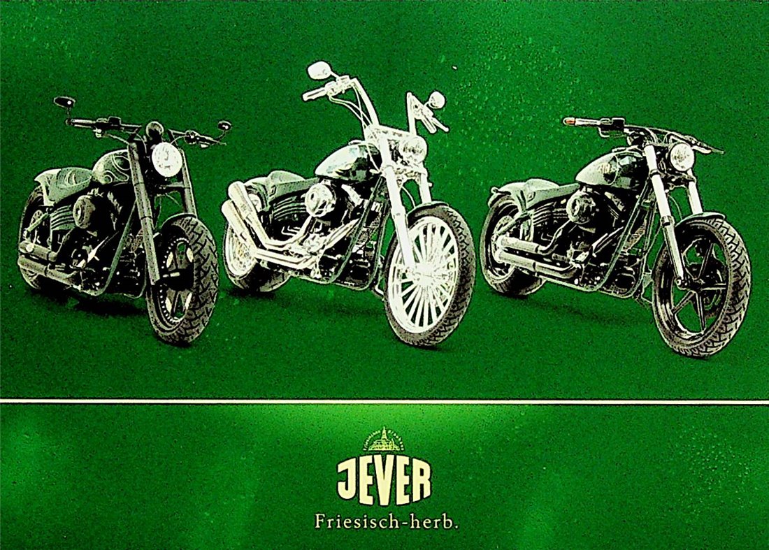 DREI TRÄUME. JEVER CUSTOM BIKES / Unzählige Sonderanfertigungen wie beleuchtete Jever Schriftzüge auf den Fendern, aufwändige Airbrushs und technische Tunings aus dem Parts & Accessoires Program machen diese Harley zu einer echten Jever Harley. Dieses Bike ist neben zwei weiteren Jever-Harley Unikaten ab dem 19. März 2019 bei der nationalen Jever Promotiontour “Für grenzenlose Freiheit” zu gewinnen! Teilnahmeschluss ist der 22. Juni 2019. Weitere Informationen unter www.jever.de. Wir wünschen allen Teilnehmern viel Glück! / Bitte ausreichend frankieren.