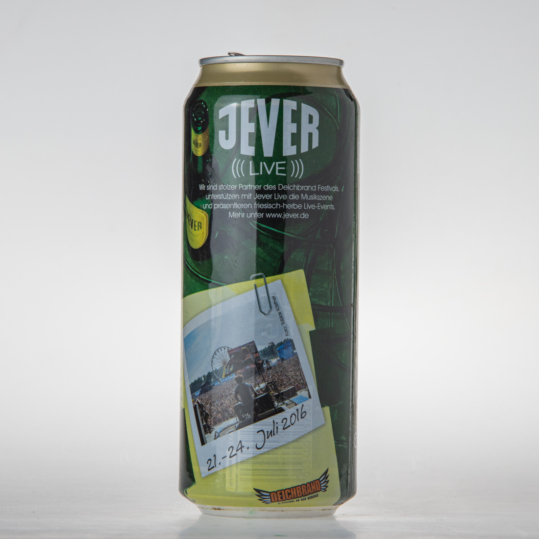 Attribut Wert Alter (min.) Alter (max.) Identifikation (Jever-Fan) ID I003182 / S0954 / S0280 Typ Dose Attribute (Allgemein) Event Deichbrand Inhalt (l) 0,50 Maße HxBxT (cm) 16,8x6,5x6,5 Material Metall Sorte Pilsener Attribute (Zeitstempel) Eigene 20160721, 20160722, 20160723, 20160724, 20170500 21.07.2016 05/2017