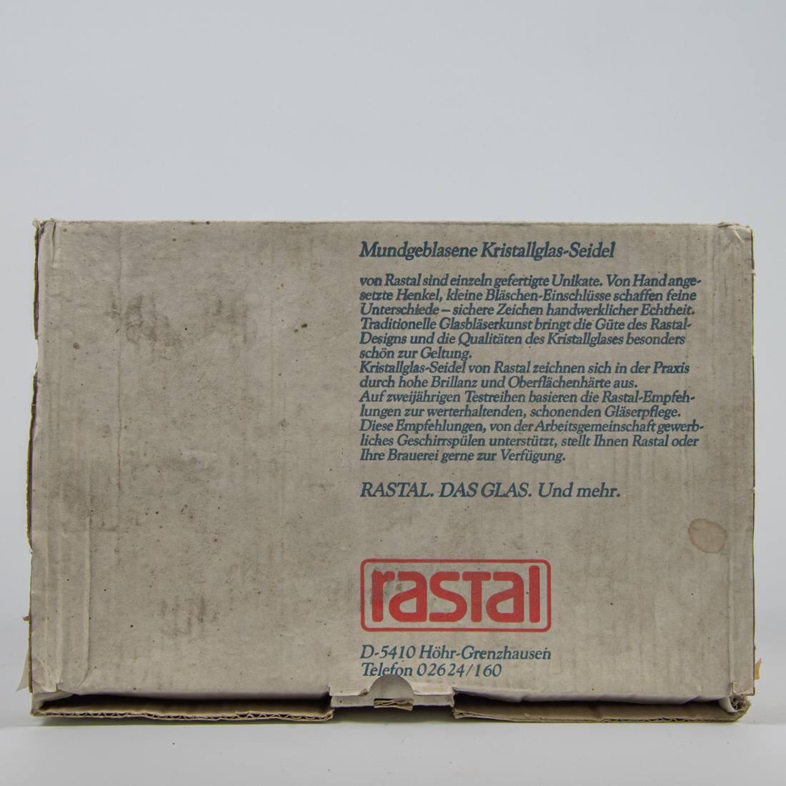 Mundgeblasene Kristallglas-Seidel von rastal sind einzeln gefertigte Unikate. Von Hand angesetzte Henkel, kleine Bläschen-Einschlüsse schaffen feine Unterschiede - sichere Zeichen handwerklicher Echtheit. Traditionelle Glasbläserkunst bring die Güte des Rastal-Designs und die Qualitäten des Kristallglases besonders schön zur Geltung. Kristallglas-Seidel von Rastal zeichnen sich in der Praxis durch hohe Brillanz und Oberflächenhärte aus. Auf zweijährigen Testreihen basieren die Rastal-Empfehlungen zur werterhaltenden, schonenden Gläserpflege. Diese Empfehlungen, von der Arbeitsgemeinschaft gewerbliches Geschirrspülen unterstützt, stellt Ihnen Rastal oder Ihre Brauerei gerne zur Verfügung. / RASTAL. DAS GLAS. Und mehr. / rastal / D-5410 Höhr-Grenzhausen / Telefon 02624/160