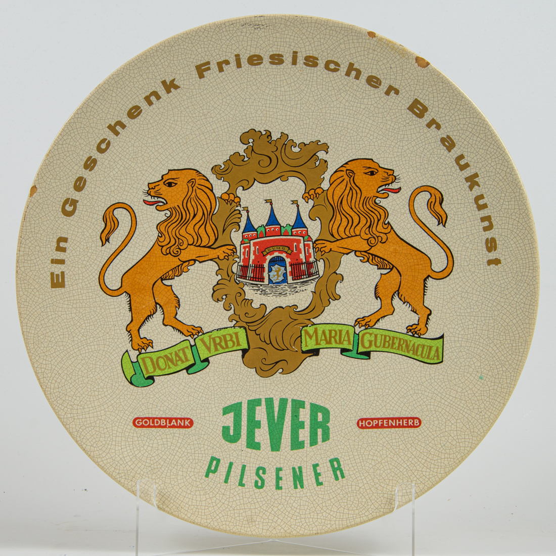 Attribut Wert Alter (min.) Alter (max.) Identifikation (Jever-Fan) ID I003562 / S1077 / B48 Typ Wandteller Attribute (Allgemein) Form Rund Herstellername ika Wunstorf Logo Pilsener 2 Maße HxBxT (cm) 36,6x36,6x4,0 Material Steingut Motiv Rundliche Schrift Sorte Pilsener
