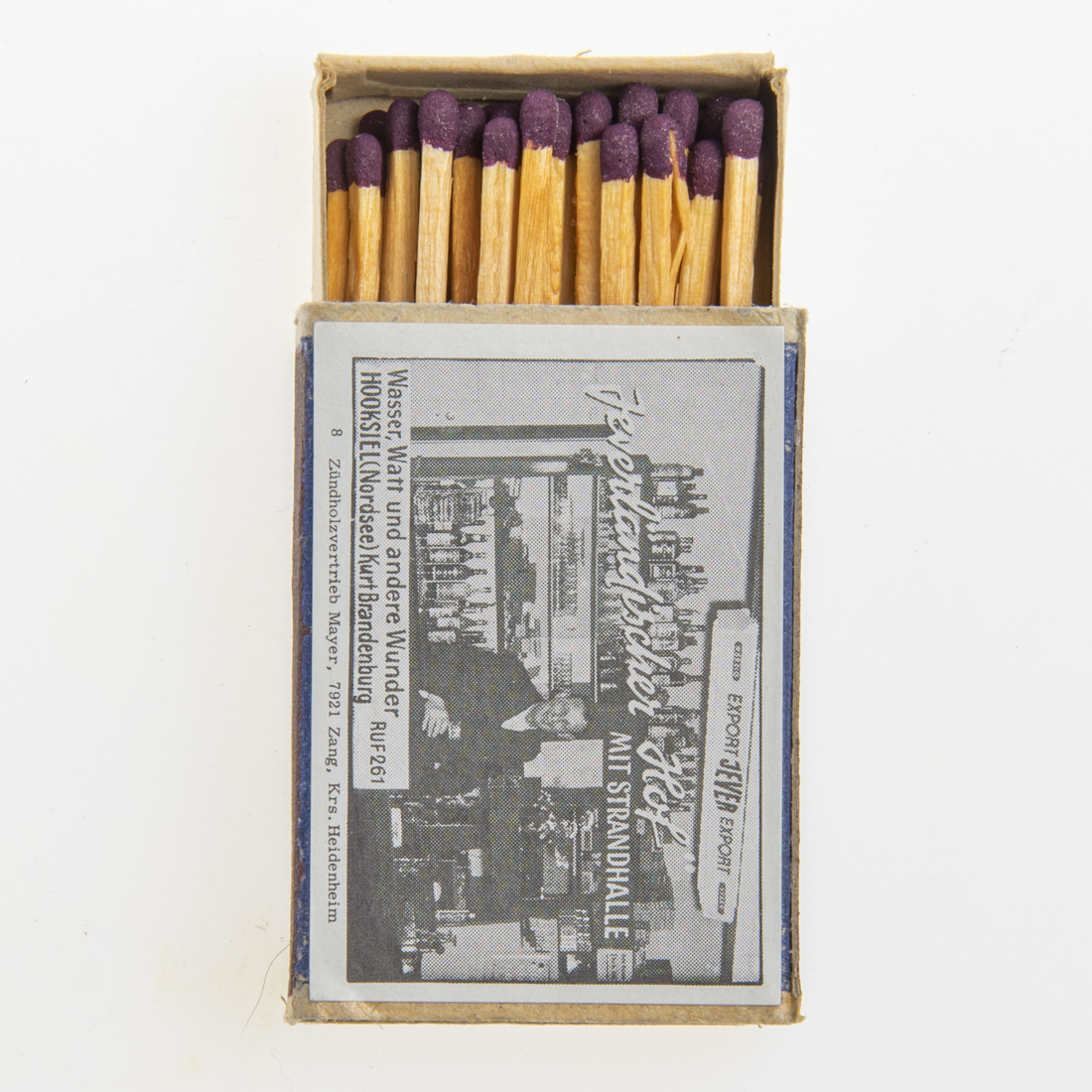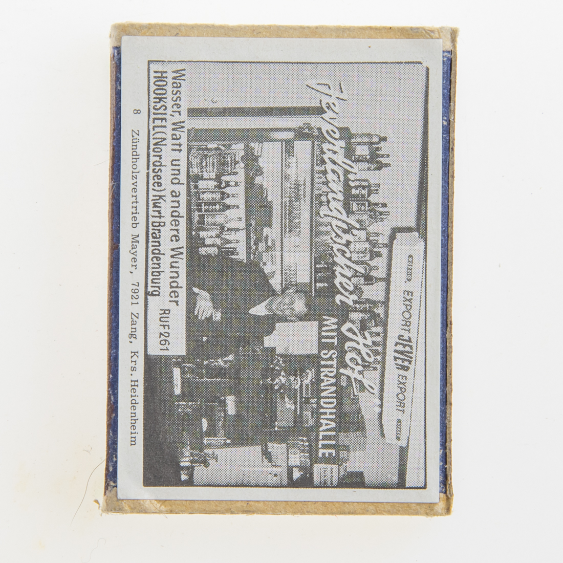 Attribut Wert Alter (min.) Alter (max.) Identifikation (Jever-Fan) ID I003853 / S1365 / B53 Typ Streichhölzer Attribute (Allgemein) Form Quader Gastronomie Jeverländischer Hof Herstellername Werbezündholz-Vertrieb Mayer Maße HxBxT (cm) 3,6x5,1x1,2 Material Papier/Pappe Ort Hooksiel > Wangerland > Landkreis Friesland > Niedersachsen > Deutschland Slogan Würzig stark Sorte Export