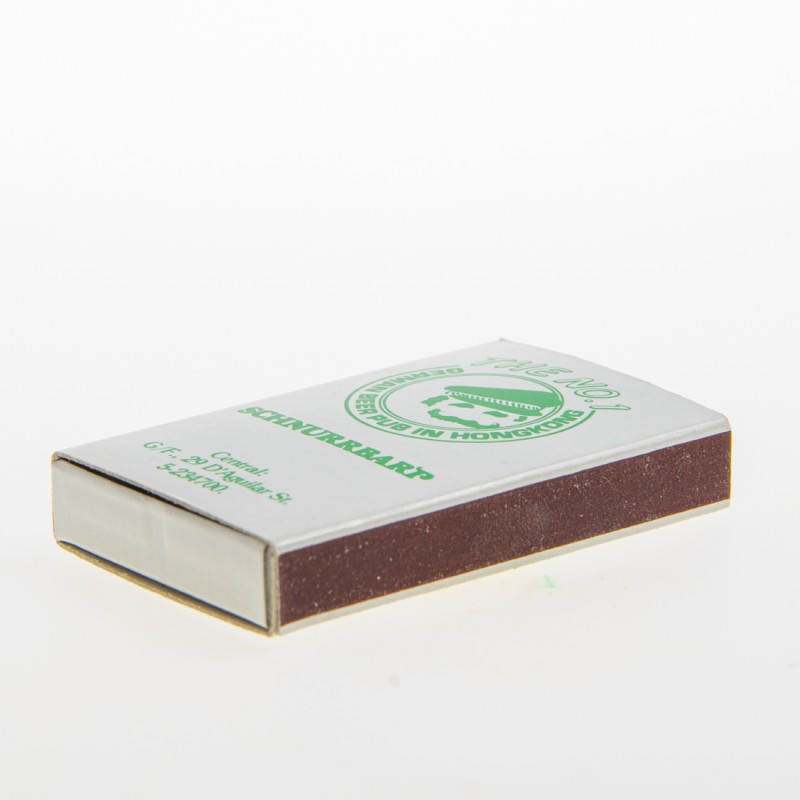 Attribut Wert Alter (min.) Alter (max.) Identifikation (Jever-Fan) ID I003870 / S1383 / B53 Typ Streichhölzer Attribute (Allgemein) Form Quader Gastronomie Schnurrbart Maße HxBxT (cm) 5,6x3,6x0,9 Material Papier/Pappe Ort Hongkong > Hongkong > Hongkong > Hongkong > Volksrepublik China Sorte (Dachmarke)