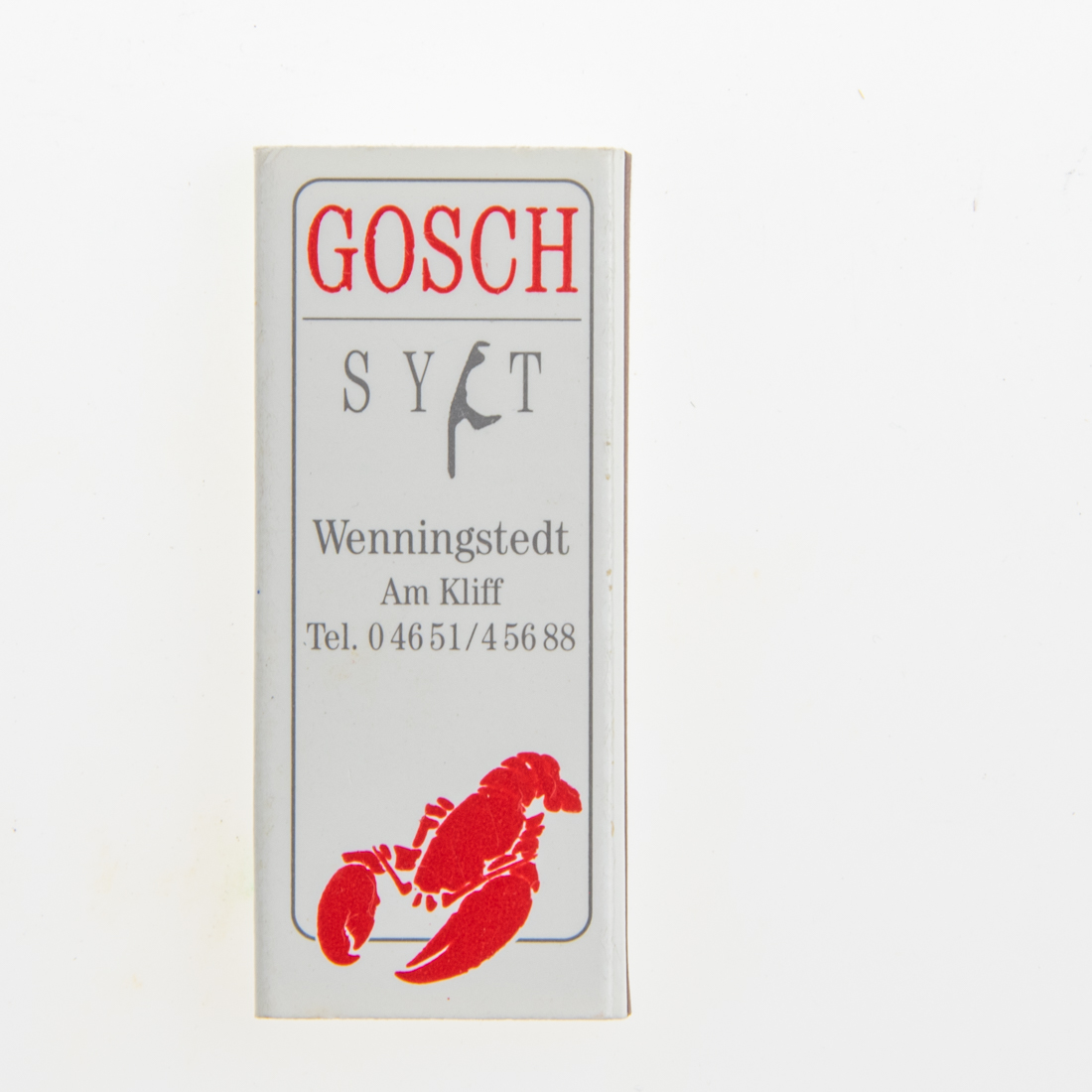 Attribut Wert Alter (min.) Alter (max.) Identifikation (Jever-Fan) ID I003871 / S1384 / B53 Typ Streichhölzer Attribute (Allgemein) Form Quader Gastronomie Gosch Logo Dachmarke 2 Maße HxBxT (cm) 5,6x2,3x0,7 Material Papier/Pappe Ort Wenningstedt > Wenningstedt-Braderup > Kreis Nordfriesland > Schleswig-Holstein > Deutschland Sorte (Dachmarke)