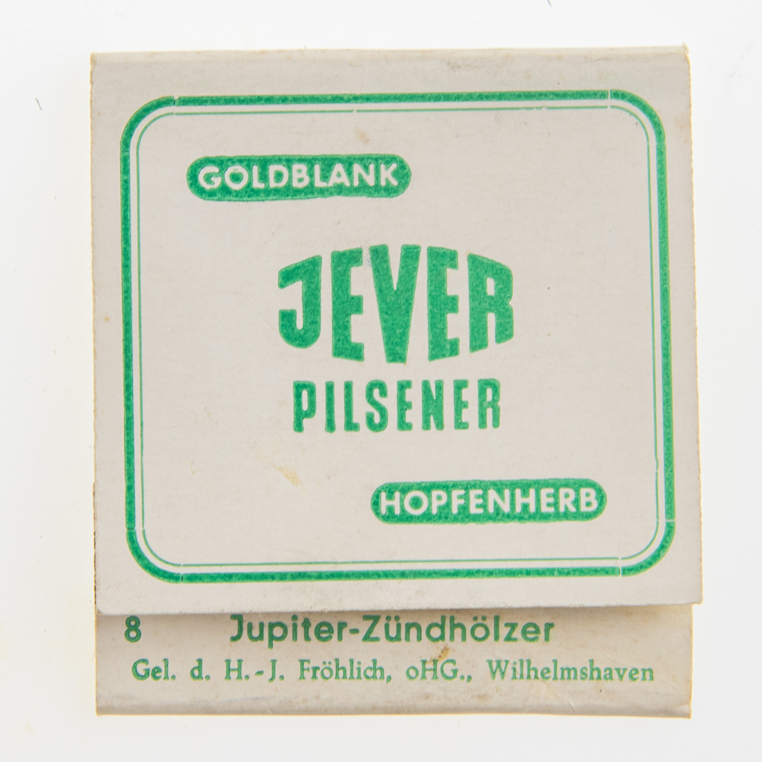 Attribut Wert Alter (min.) Alter (max.) Identifikation (Jever-Fan) ID I003891 / S1404 / B53 Typ Streichhölzer Attribute (Allgemein) Form Quader Herstellername Jupiter-Zündhölzer Logo Pilsener 2 Maße HxBxT (cm) 5,5x5,0x0,3 Material Papier/Pappe Slogan Goldblank Hopfenherb Sorte Pilsener