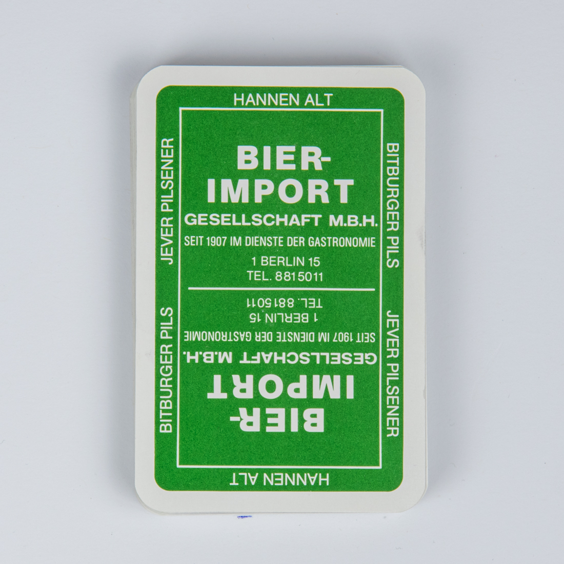 Attribut Wert Alter (min.) Alter (max.) Identifikation (Jever-Fan) ID I004039 / S1560 / B54 Typ Skat-Spiel Attribute (Allgemein) Maße HxBxT (cm) 9,1x5,9x0,9 Material Papier/Pappe Ort Berlin > Berlin > Berlin > Berlin > Deutschland Sorte Pilsener
