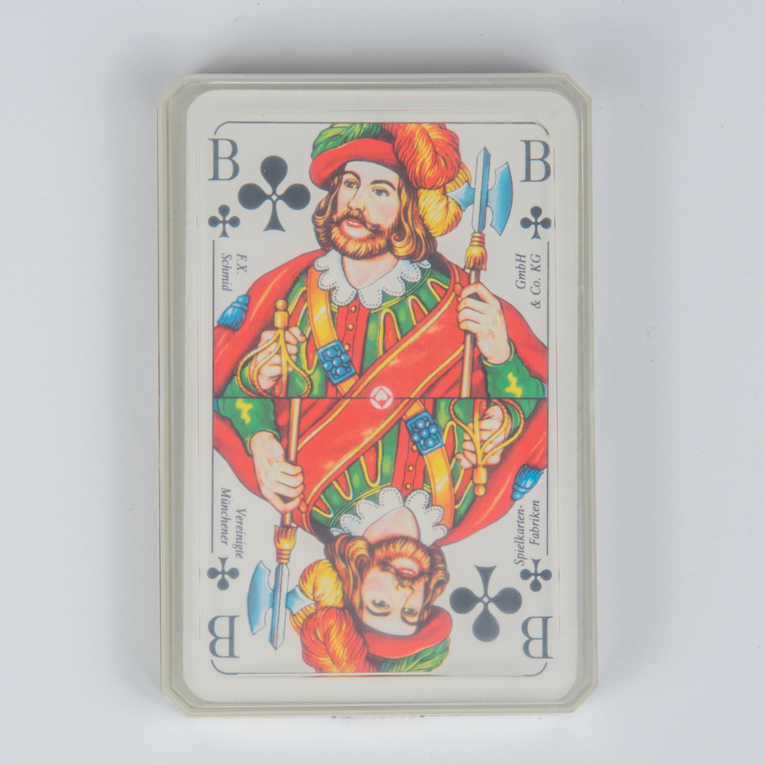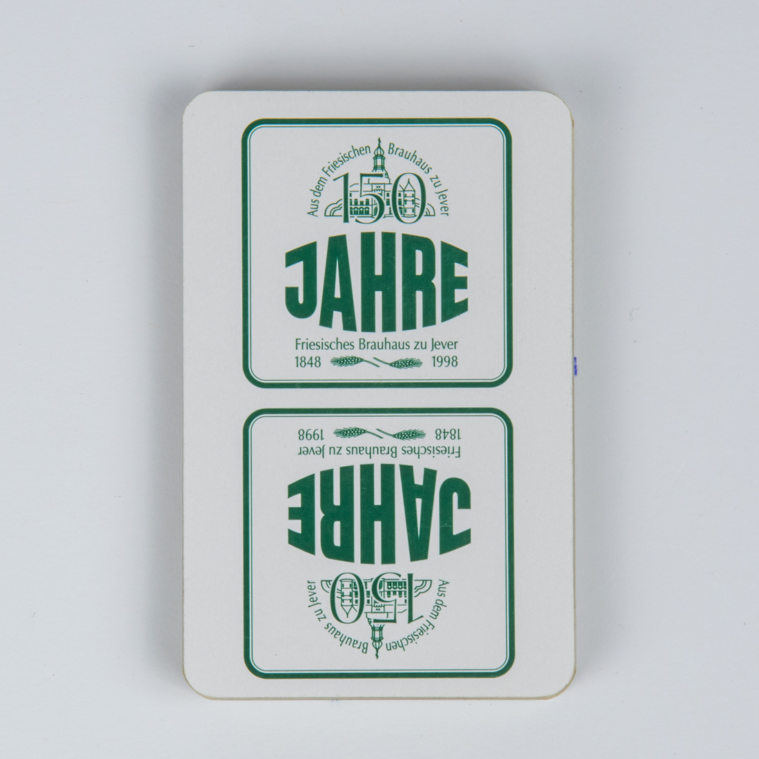Attribut Wert Alter (min.) Alter (max.) Identifikation (Jever-Fan) ID I004046 / S1567 / B54 Typ Skat-Spiel Attribute (Allgemein) Event 150 Jahre Friesisches Brauhaus zu Jever Herstellername F.X. Schmid Vereinigte Münchener Spielkarten-Fabriken GmbH & Co. Logo Dachmarke 4 Maße HxBxT (cm) 9,1x5,9x0,9 Material Papier/Pappe Sorte (Dachmarke) Attribute (Zeitstempel) Eigene 19980000 1998 1998
