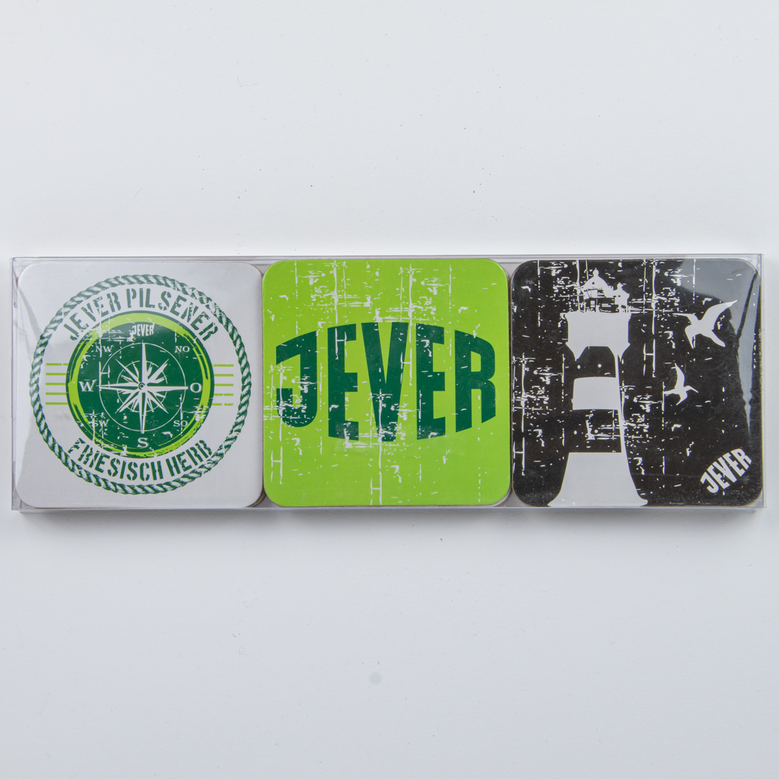 JEVER / JEVER / JEVER / JEVER / JEVER / seit 1848 / 48 / WIE DAS LAND, SO DAS JEVER. / JEVER PILSENER FRIESISCH HERB / FRIESISCH HERB / JEVER / Friesisches Brauhaus JEVFER PILSENER