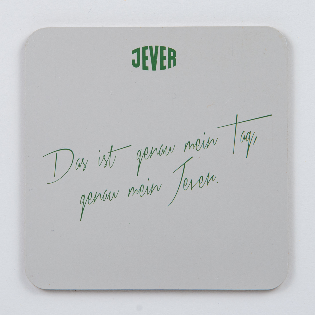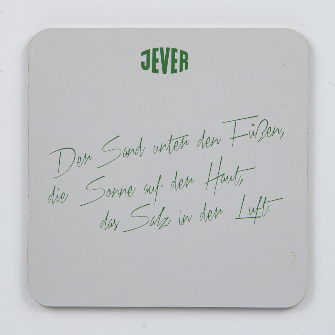 JEVER Das ist genau mein Tag, genau mein Jever. / JEVER Keine Pflichten, keine Hektik. Raus aus dem Alltag, raus aus der Stadt. / JEVER Der Sand unter den Füßen, die Sonne auf der Haut, das Salz in der Luft. / JEVER Das ist unsere Zeit, das ist unser Land. Das bist Du, das bin ich. / JEVER / JEVER / JEVER / JEVER / JEVER / JEVER / JEVER / JEVER
