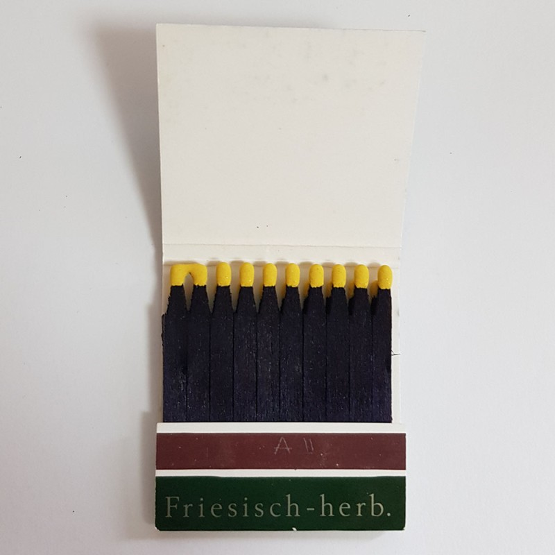 Attribut Wert Alter (min.) Alter (max.) Identifikation (Jever-Fan) ID I004219 / S1757 / B53 Typ Streichhölzer Attribute (Allgemein) Form Quader Logo Dachmarke 2 Maße HxBxT (cm) 5,4x5,0x0,3 Material Papier/Pappe Slogan Friesisch herb Sorte (Dachmarke)