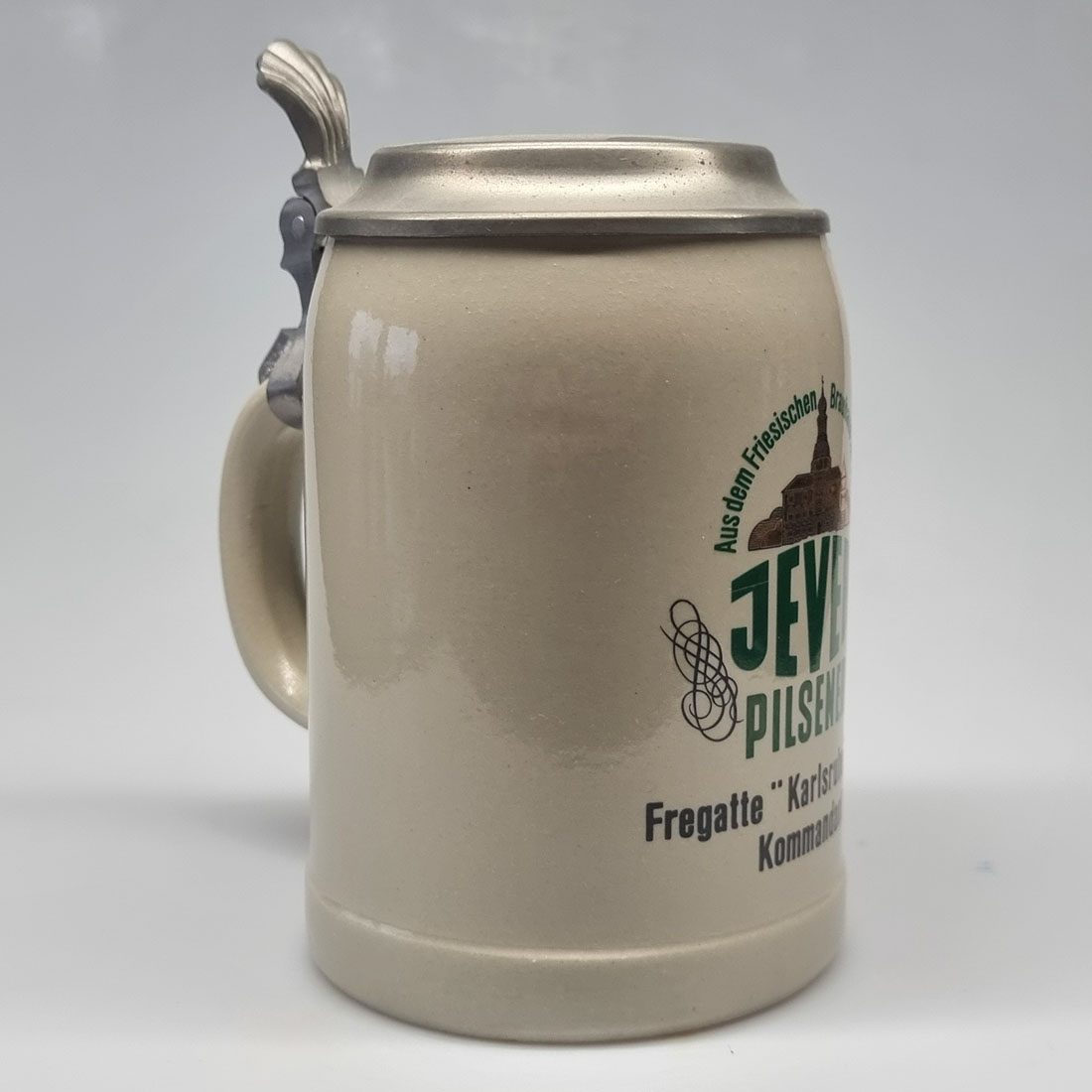 Attribut Wert Alter (min.) Alter (max.) Identifikation (Jever-Fan) ID I004302 / K0362 / Typ Krug Attribute (Allgemein) Form Krug / Seidel Füllstrich geprägt > 0,5l////WW Hersteller-Zeichen WS Inhalt (l) 0,50 Logo Pilsener 6 Maße HxBxT (cm) 16,5x10,0x10,0 Material Steingut Material Zinn Sorte Pilsener