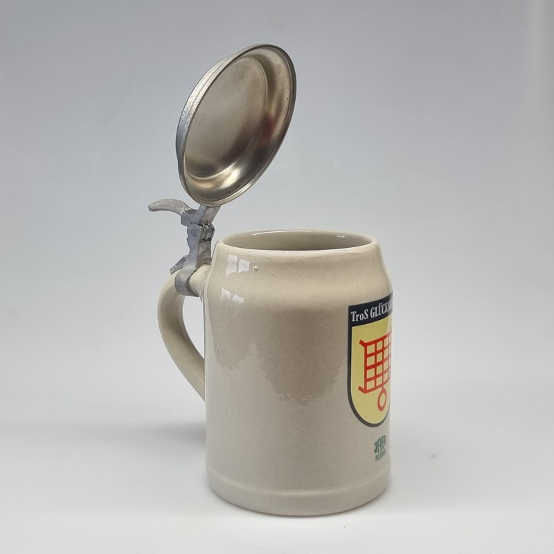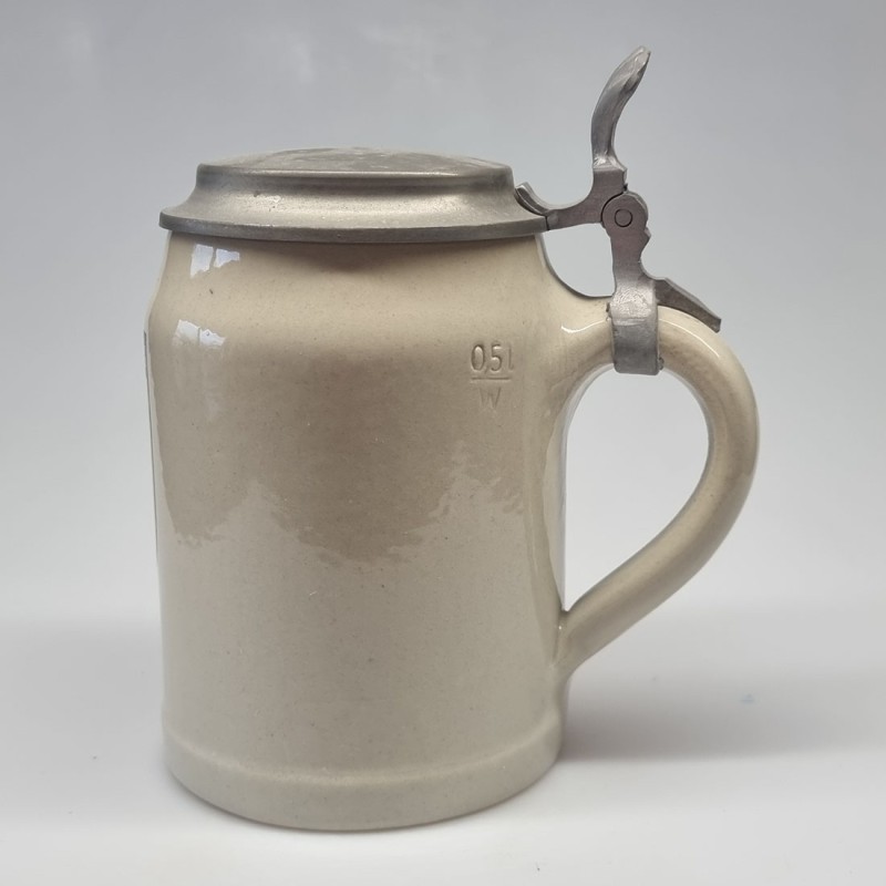 Attribut Wert Alter (min.) Alter (max.) Identifikation (Jever-Fan) ID I004315 / K0376 / Typ Krug Attribute (Allgemein) Form Krug / Seidel Füllstrich geprägt > 0,5l////W Hersteller-Zeichen W Inhalt (l) 0,50 Logo Pilsener 2 Maße HxBxT (cm) 16,7x9,8x9,8 Material Steingut Material Zinn Sorte Pilsener