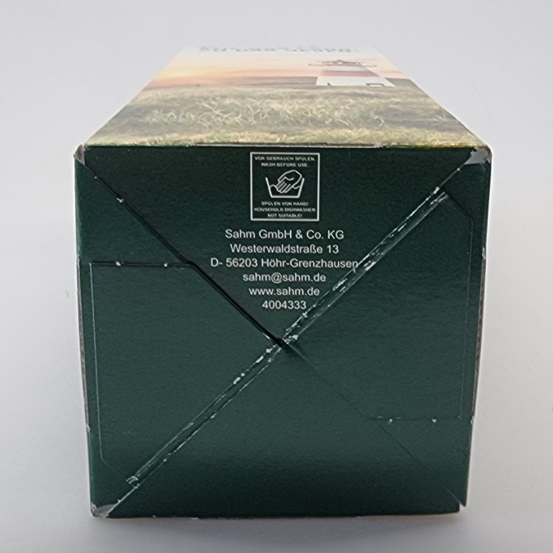 VOR GEBRAUCH SPÜLEN / WASH BEFORE USE / SPÜLEN VON HAND! / HOUSEHOLD DISHWASHER NOT SUITABLE! / Sahm GmbH & Co. KG / Westerwaldstraße 13 / D-56203 Höhr-Grenzhausen / sahm@sahm.de / www.sahm.de / 4004333