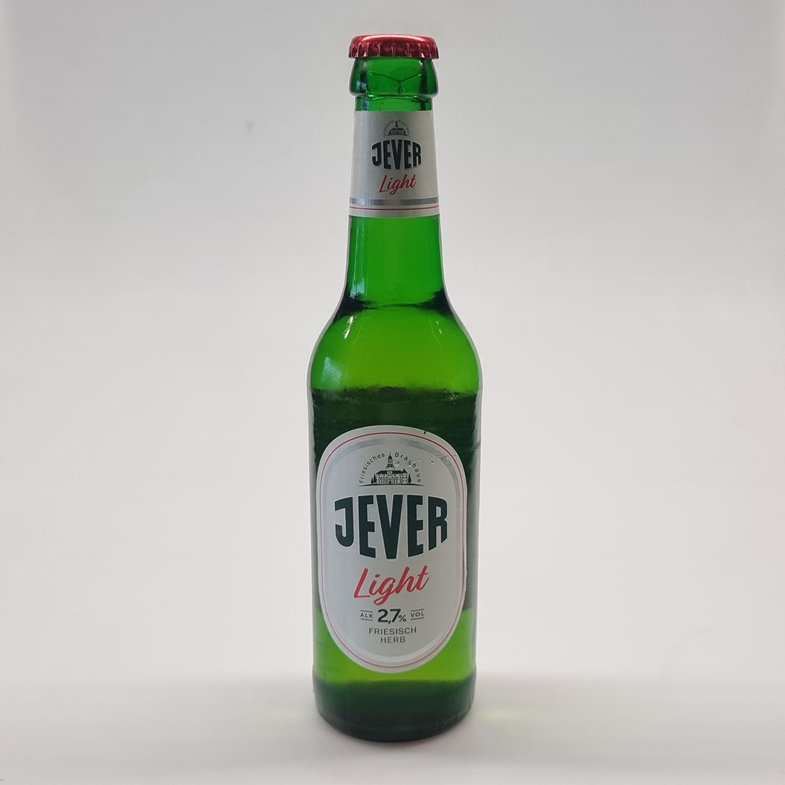 JEVER LIGHT (SCHANKBIER) / SCHON PROBIERT? JEVER FUN ALKOHOLFREI / Jever Light ist das alkohol- und kalorienreduzierte Jever mit dem einzigartigen und unverwechselbar herben Charakter. / Gebraut nach dem Deutschen Reinheitsgebot. / Schankbier. Zutaten: Wasser, Gerstenmalz, Hopfen / 4 008948 170003 / 100 ml enthalten durchschnittlich: / Energie 103 kJ (25kcal) / Fett 0 g / - davon gesättigte Fettsäuren 0 g / Kohlenhydrate 1,8 g / - davon Zucker < 0,5 g / Eiweiß < 0,5 g / Salz 0,02 g / Friesisches Brauhaus zu Jever KG Elisabethufer 18 26441 Jever / Mindestens haltbar bis Ende 06.25 L0309J21001 / Alk. 2,7 % vol / e 0,33l / MEHRWEGPFANDFLASCHE